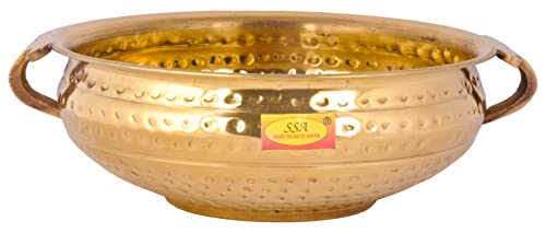 SHIV SHAKTI ARTS® Handcrafted Brass Urli Hammered Design Decorative Bowl Platter Volume- 3000 ml for HomeTemple and Office Décor