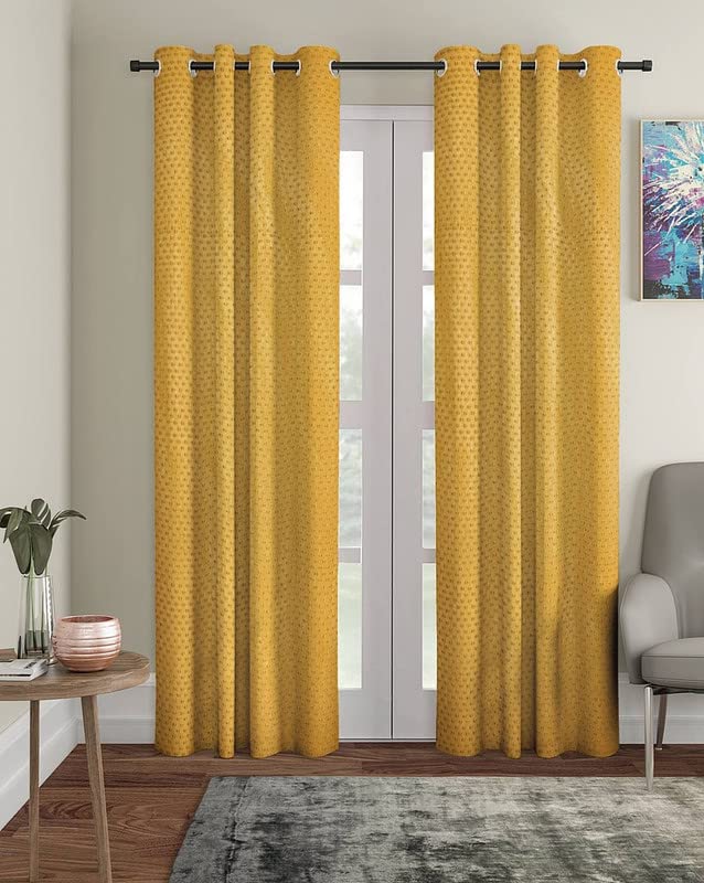 The Purple Tree Self Design Solid Embossed Curtains for Living Room (Beige, 2 Panels) Embossed Curtains with Metal Grommets, Door Curtains, Dark Room Curtain, Solid Curtains