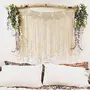 The Decor Hub Fabric Striped Curtain Macrame Door Curtain | Large Wedding Backdrop Wall Hanging Tapestry White | Macrame Window Curtain | Outdoor Backyard Party Home Deco 85X110Cm Ivory
