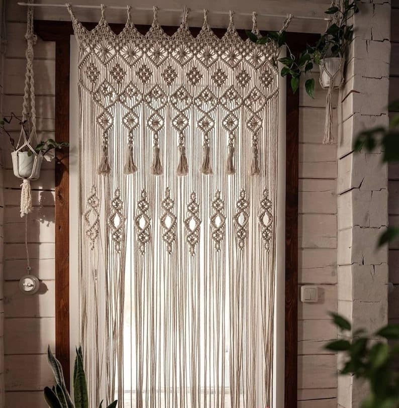 This Macrame Curtain is handcrafted / hand woven with Natural Pure Cotton cord.. The wall hanging does not include wooden dowel / driftwood . # home decors Wedding decors Curtain Gifts Wall decors Macrame Wall hanging Wedding backdrop Door beads shower curtain leaf Best friend gift Bridesmaid gift Window curtain These Macrame Curtain Wall Hanging will upgrade your window view perfect fit for wedding backdrop bathroom door..