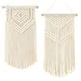 Material: 100% Cotton wooden dowel.Color: BeigePackage Includes: 2PCSSize: approx 10" W x 16.5" L and 10"Wx17.5"L wooden dowel 10" L.Macrame Wall Hanging is perfectly fit in the interior of living room bedroom apartment dorm room baby nursery kids room and even a cozy coffice or a studio.Durable sturdy hangs on a real wood Dowel which makes it strong and long lasting.