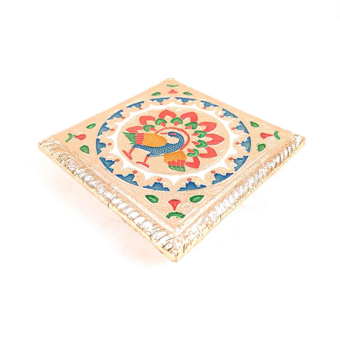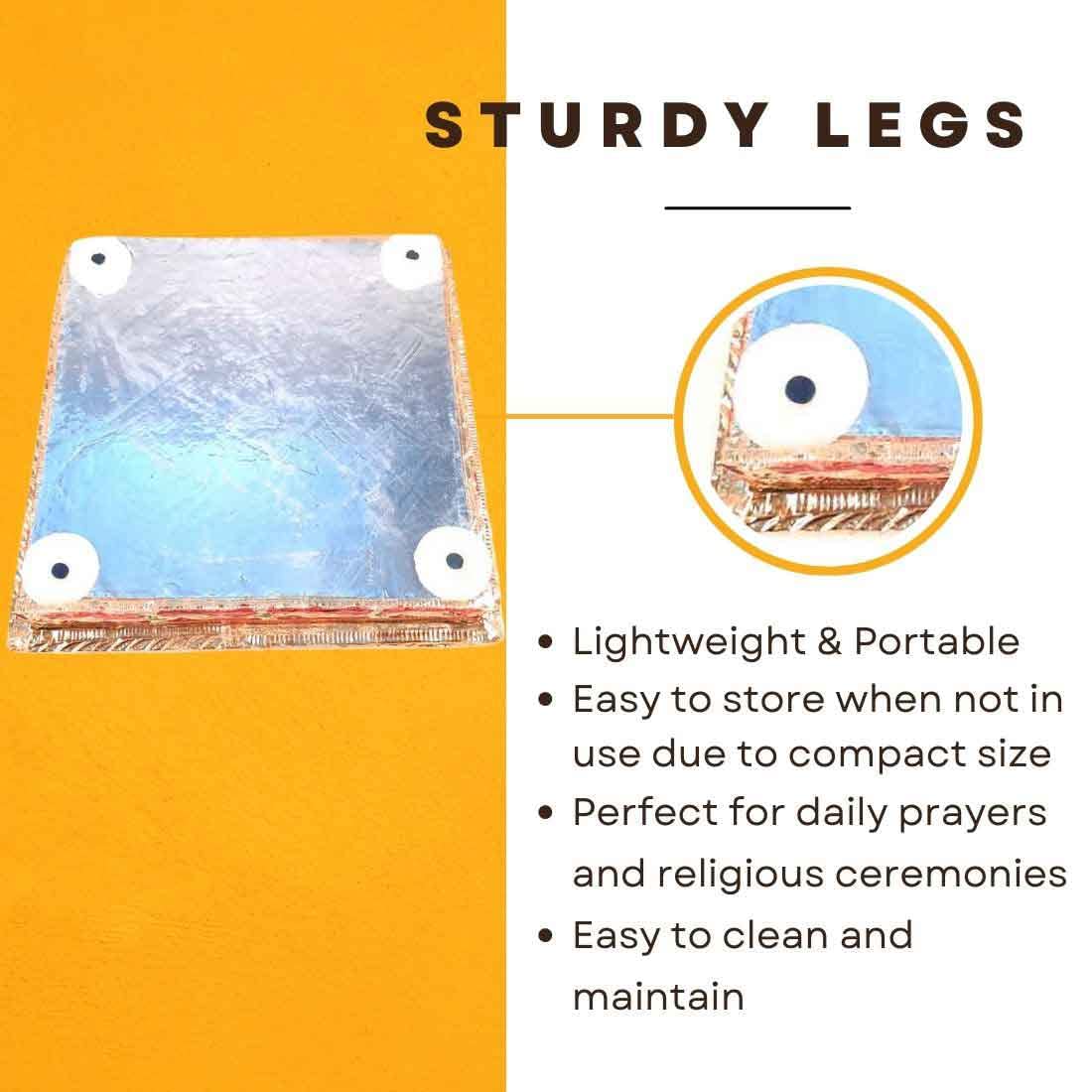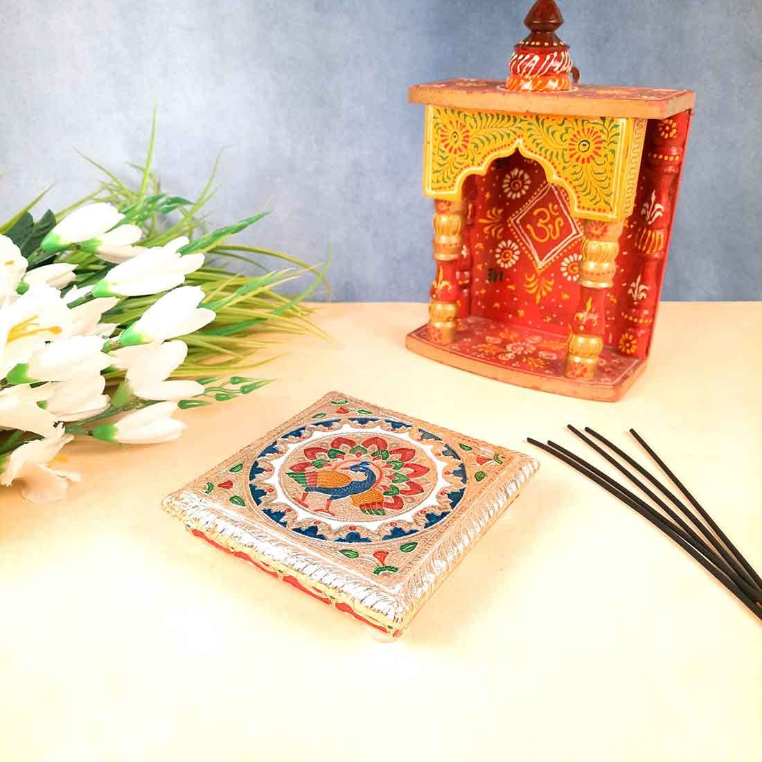 This beautiful meenakari chowki is crafted from high-quality wood and it comes with unique handwork done on the surface. This bajot has an attractive top pattern to give it a mesmerizing look. It will add more beauty to your Pooja room as well as you can use it as puja chowki for god idols placement. So it will be ideal to place your God or Goddess and this chowki will make the God idol special. It can be used in the Puja room to keep Puja items Idols Pooja thali Kalash Lamp/diya Incense stick holder etc. It can also be used in daily puja done at home to occasional temple ceremonies and annual festivals to a few lifetime events such as the birth of a baby or a wedding or to begin a new venture. It will blend along beautifully within the divine aura of your pooja room. This useful and easy-to-carry small wooden table is carved in Indian style which makes it eye-catching. It is a charming gift to be gifted on any special day. This would be best suited for any part of your home be it the Pooja room or drawing room as it is multipurpose. It is an auspicious gift for your near and dear ones These bajots are perfect for Gift on Anniversary Marriage Wedding Diwali housewarming festive occasions also Return Gifts to loved ones & make their celebrations memorable.