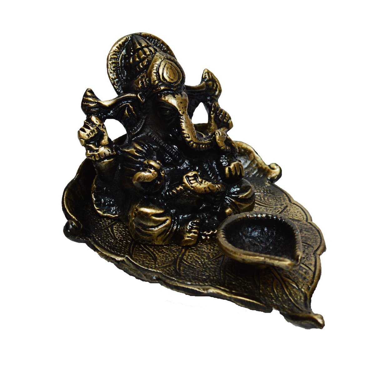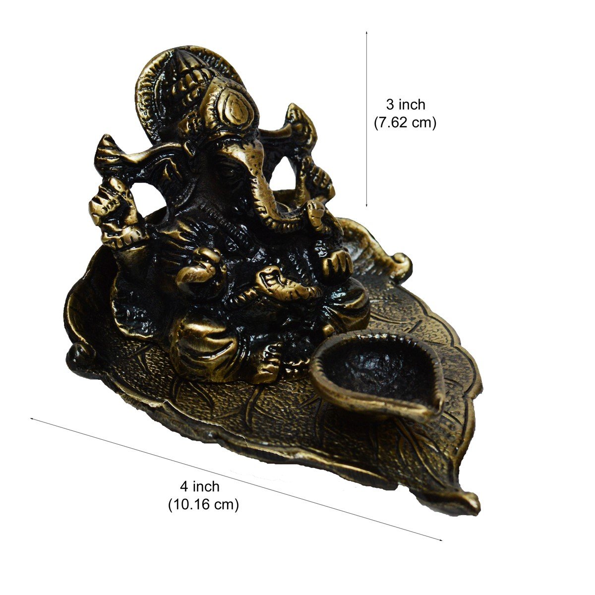 JAIPUR STONE WORK present to you the god of intellect lord ganesha on a shimmering metal leaf having Diya. Keep it in your Pooja room or gift it to your friends and family the blessings will always touch the soul of the beholder. This metal lord ganesha statue has been diligently handcrafted by skilled artisans from the house of JAIPUR STONE WORK using various traditional techniques.