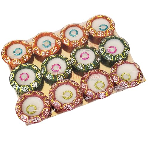 Package Contains:- Pack of 12 Earthen Clay Diwali Diya Set - Wax Filled - Multicolor- Handmade And Handpainted Each Diya