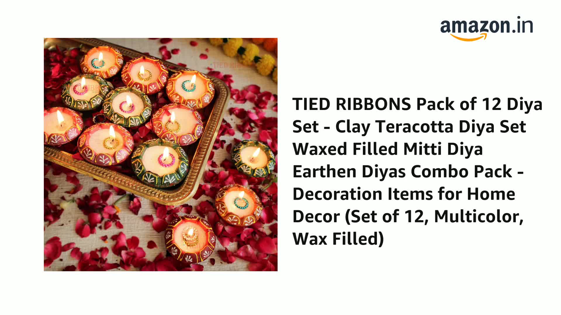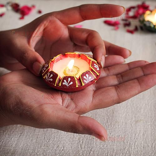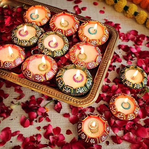 TIED RIBBONS Pack of 12 Diwali Diya Set - Clay Teracotta Diya Set Waxed Filled Mitti Diya Earthen Diyas Combo Pack - Diwali Decoration Items for Home Decor (Set of 12, Multicolor, Wax Filled)