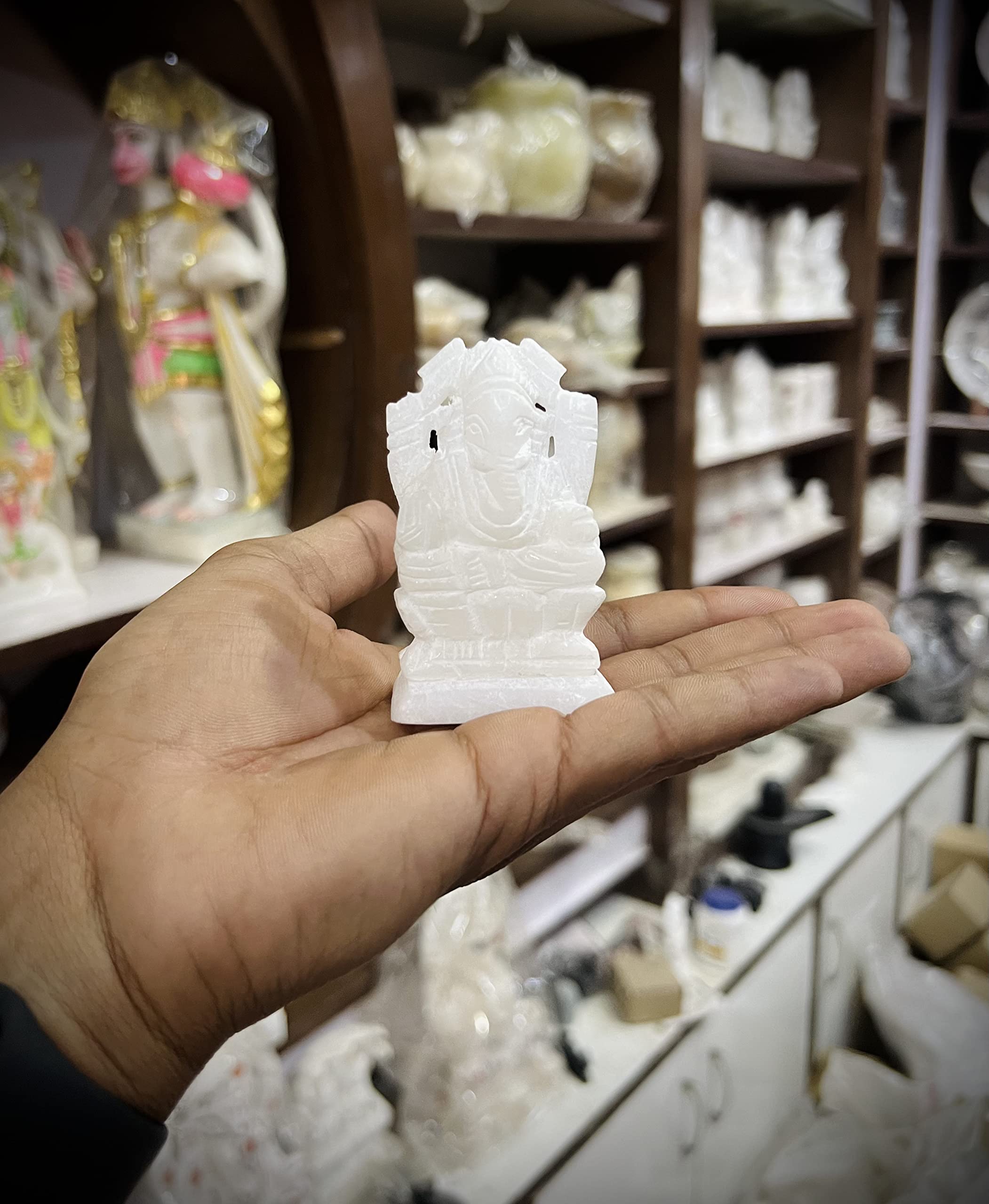 This Figurine Is Marble Alabaster Stone Handcrafted Finish To It. Lord Ganesha Idol in White Indian Marble Stone shows the grace and greatness of lord. This Idol is best suited to place it in home temple or to be given as gift on auspicious occasions like House Warming ceremony. Marble Stone is pure and does not contain any impurity of any kind. USAGE: Home decor office desk children's study desk and computer table with the divine beauty of Ganesh Ji. Exquisitely designed and intricately crafted it makes for a perfect gifting option for Relatives Friends and Colleagues. GIG Bazaar Ganesh Ji is handcrafted by our skilled artisans giving it an eye-catching look. You Can Also Consider Gifting This Statue To Your Near And Dear Ones As A Present.