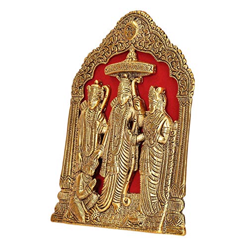 Enlighten your home with this decorative wall piece having Lord idols made from Metal which reflects the artistic brilliance and adds elegance to your decor. It is a new start for the new house owner and by gifting these idols you are wishing them an auspicious stay at the house. In addition to being an auspicious gift these idols and figurines can also make a good addition to the house in terms of home Decor. Lard Ram darbar idol is handmade decorative brass sculpture for home Decor. Gorgeous hand work and perfect showcase of Indian handicrafts. Lord ram metal statue is handmade handcrafted items use for religious worship of hindu god & goddess. This is a beautiful antique unique & gorgeous hand work on solid metal brass figure of Hindu god ram. Bless your place and enlighten the beauty and spirituality of your house or work place with this handmade bhagwan Shri Ram Sculpture.