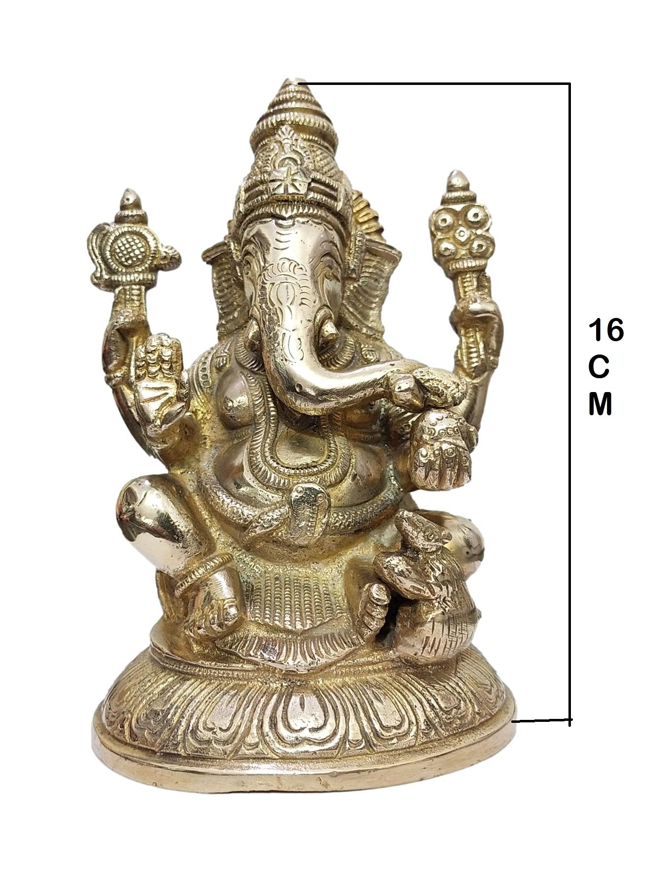 The idol is made up of virgin brass. This means it is easy to clean and shine to make it yellow. The idol has a design which makes it suitable for home wooden temple or living room altar or study room cupboard. According to vastu ideally the trunk of the sitting Ganesha should be tilted towards his left. This symbolises happiness and success. So when you're out there looking for that pretty idol to get home make sure that you give special attention to the trunk. The idol of sitting Ganesha idol is best for the house because he represents a calm but determined demeanour. This is the exact kind of energy you want at home. Lord Ganesha The son of Lord Shiva and Goddess Parvati has a deep spritual significance. It symbolises the consciousness which is omnipresent. Dimension: 16 x10.5 x 16 cms Weight: 1860 gms Ganpati in Brass also symbolises the Purity and immortality. Brass is truly timeless classic and elegant in its appeal. One of the beautiful aspect of brass lies in the fact that it does not wear off quickly. It charming luster and color stays put for years together. When it finally starts fading the brass gets a lovely burnished look with a soft glow which enhances its beauty triple fold. You can rely upon athizay when it comes to shop for Brass metal work.