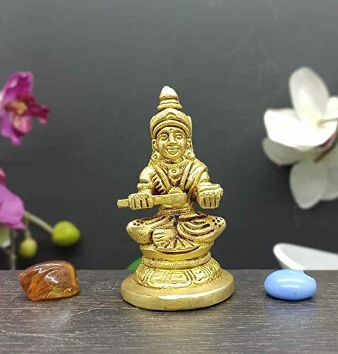 BHARAT HAAT Brass Maa Annapurna Devi Idol Statue for Pooja Decor Items Collectible Handicraft Art Yellow