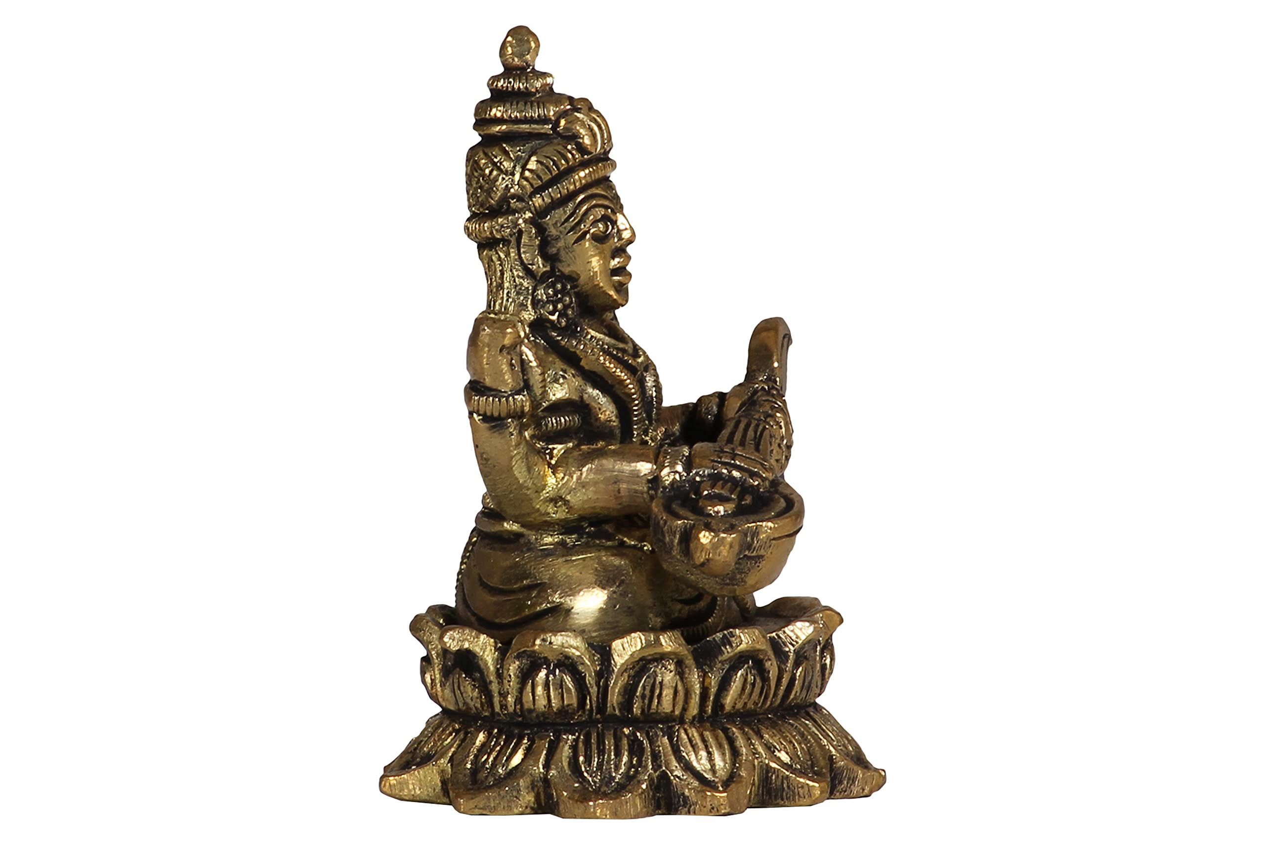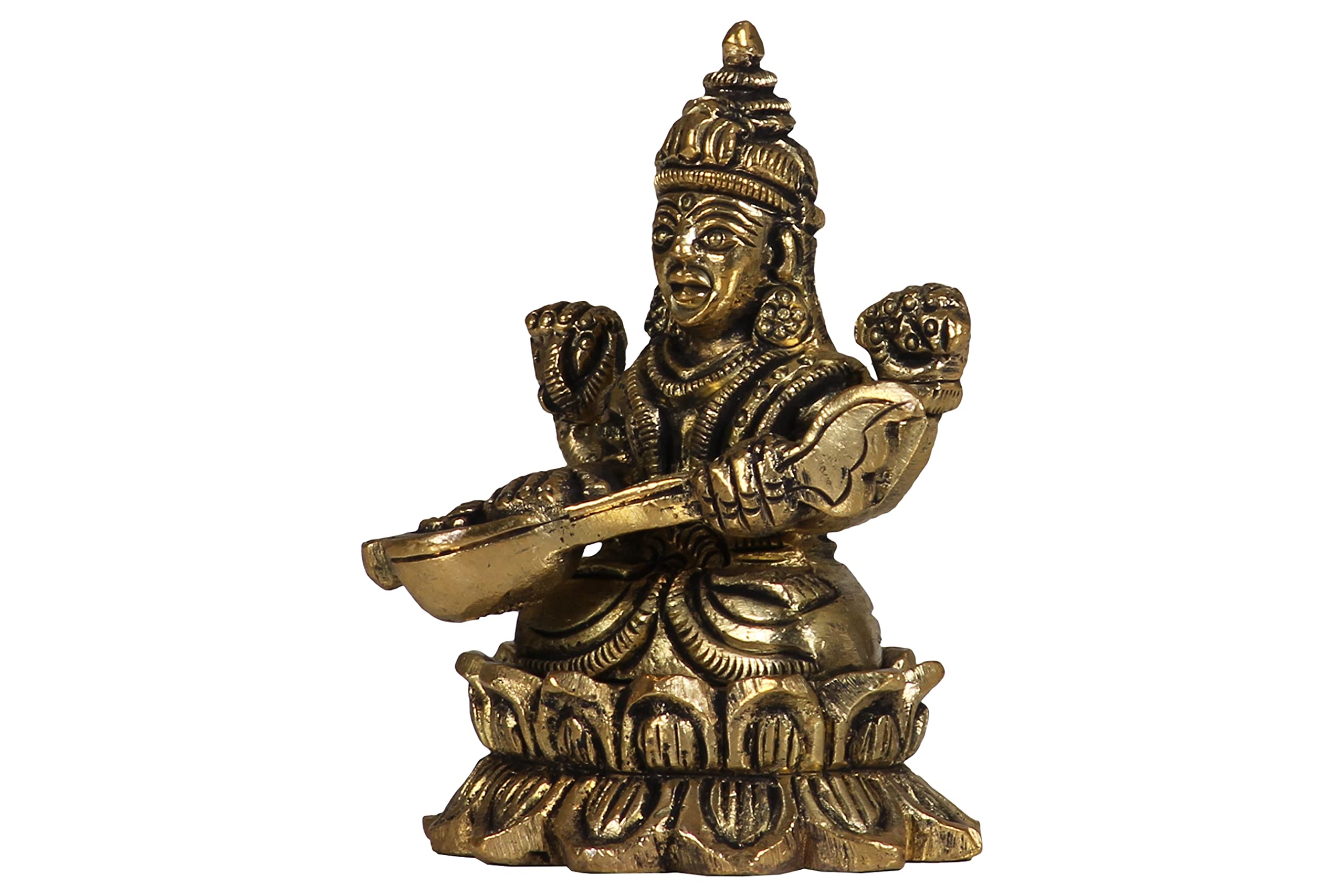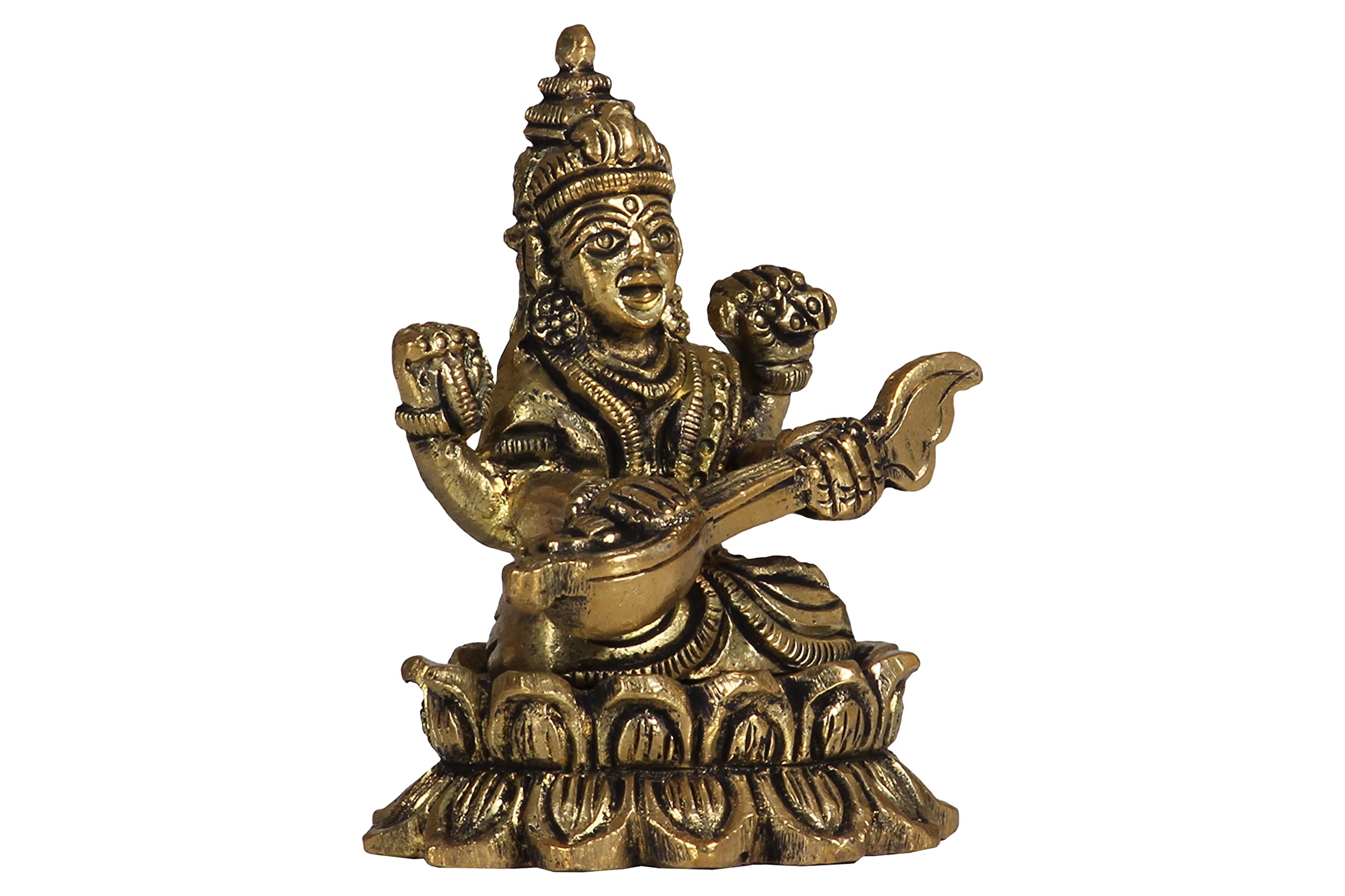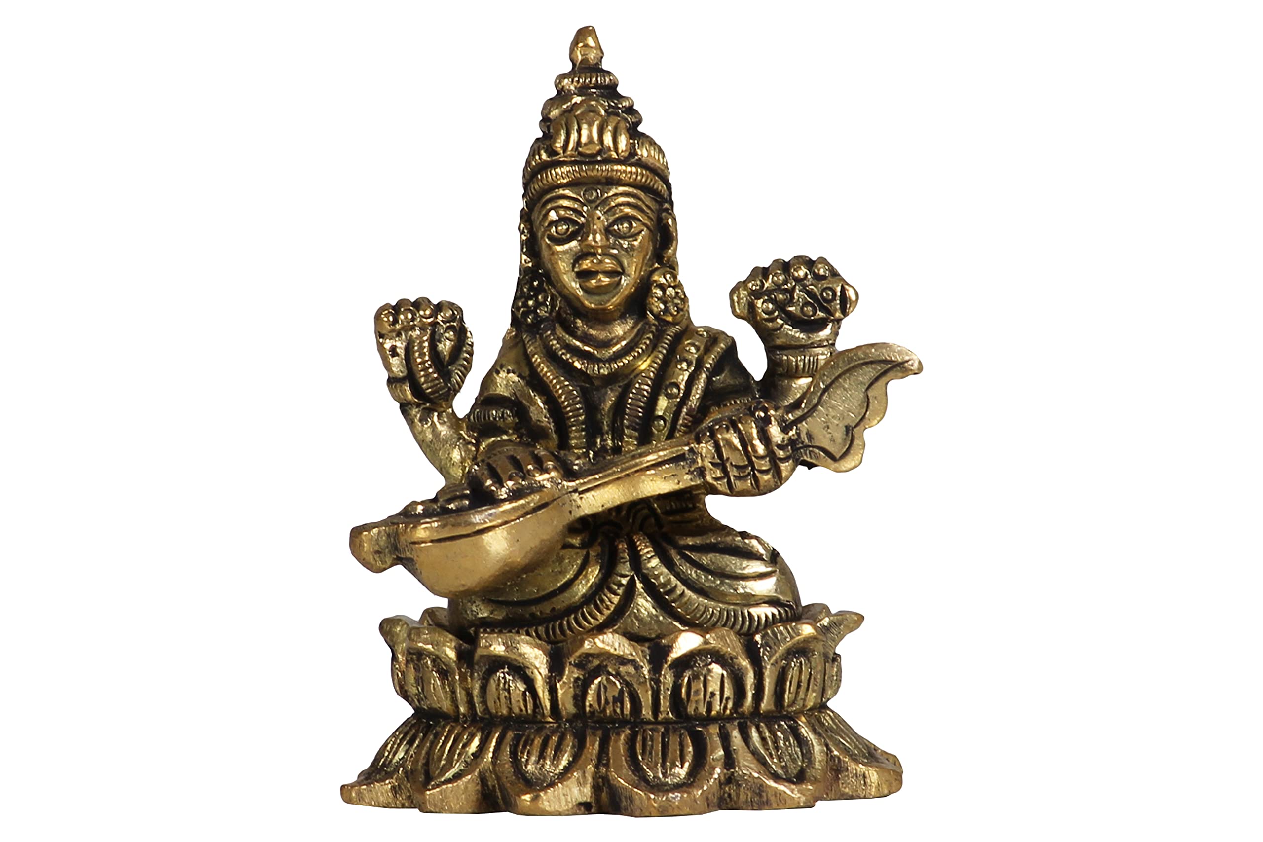 Bharat Haat has been in the industry for two decades now. We are a manufacturer of Brass decorative products and export our products to other countries as well.We design develop and manufacture solid brass products such as home décor Pooja products living room and art décor products.Our quality is what we are known for. We do not compromise our product quality. We have an in-house team who manages all our design aspects and work closely with the current trend.Size: 5.08 x 4.06 x 7.36 cm (L x W x H); 2 x 1.6 x 2.9 Inch (L x W x H)Package Contain: 1 x Saraswati Ji Sitting on Kamal Small