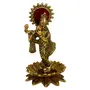 Lord Krishna is playing flute standing on Lotus. Brings prosperity and happiness to your place by keeping this metal krishna statue. It is also an ideal gift for several occasions such as Wedding Gifts Corporate Gifts Birthday Gifts Diwali Gifts Rakhi Gifts New Year Gifts and Compliments. The Dimensions of Krishna Radha Statue is 16 X 8 X 8 cm.
