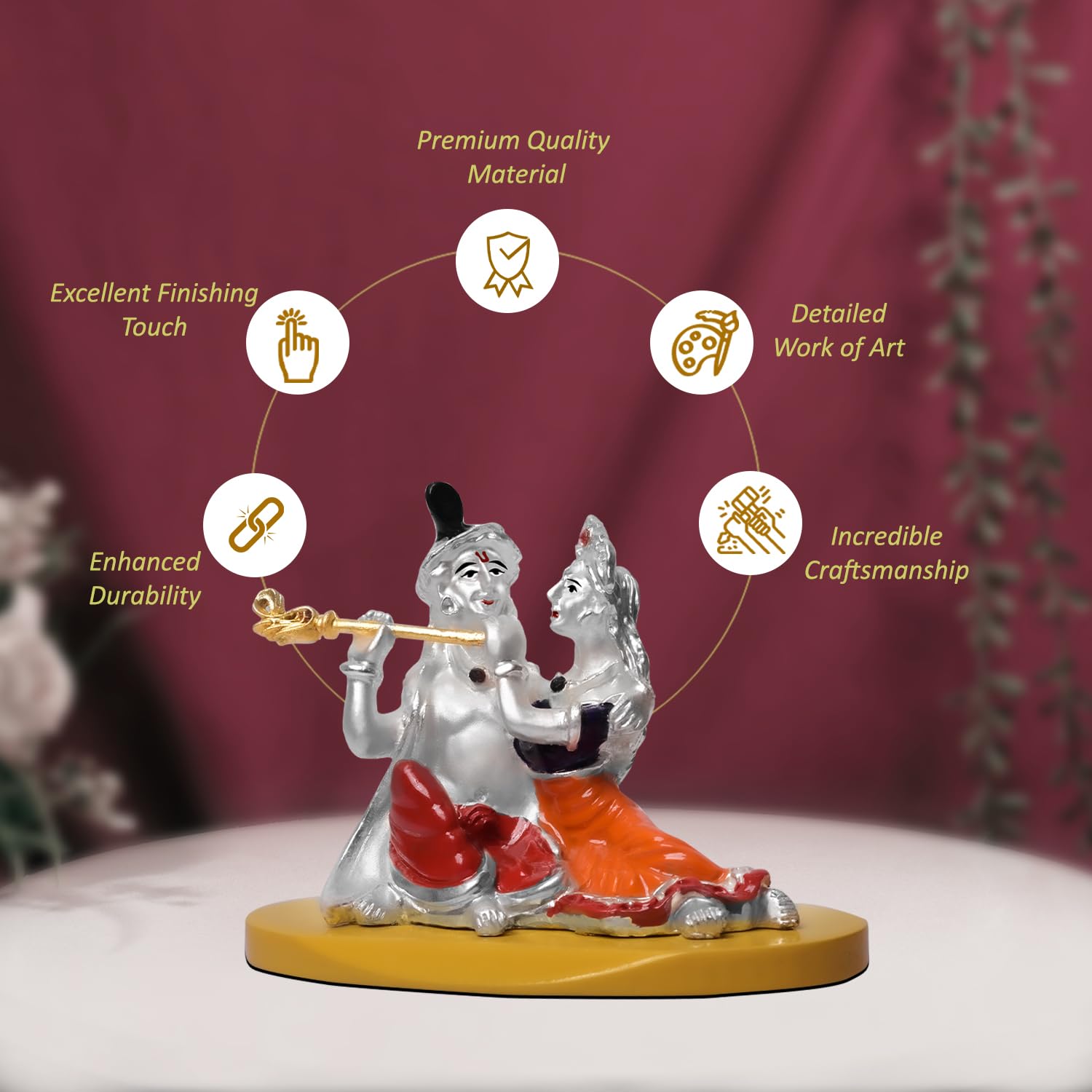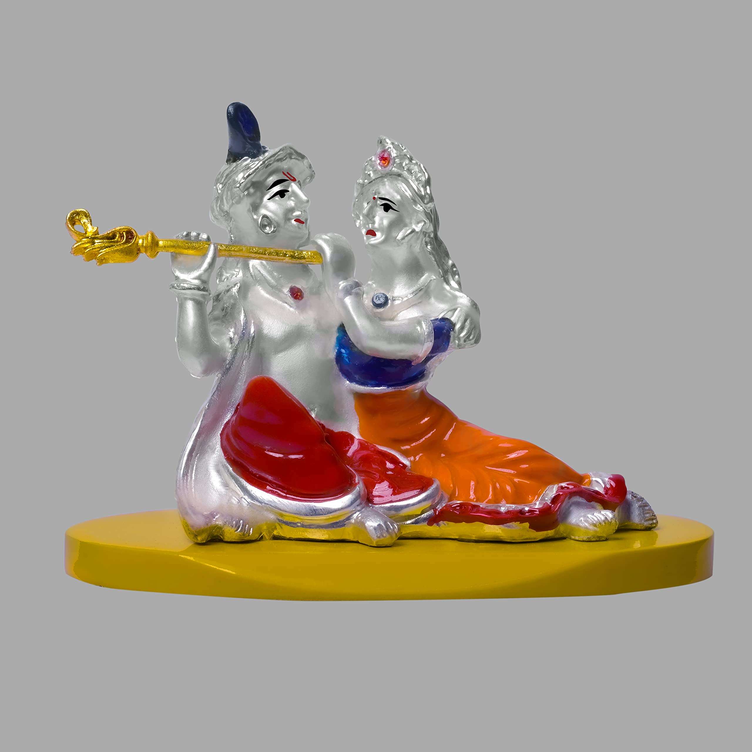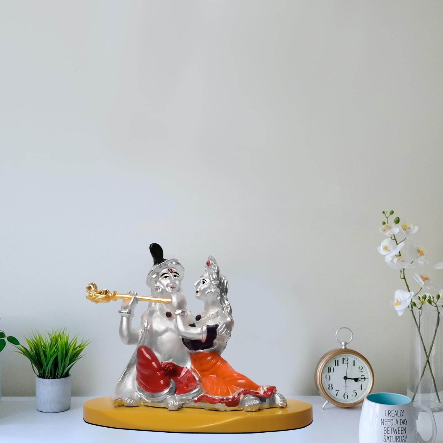 MATERIAL: 999 Silver-Plated infused with Resin this divine idol creates a pleasant atmosphere and adds pure delight to any space. 999 Silver-Plated Sculpture of Radha Krishna lets you delve into a pure ocean of spirituality while maintaining its vibrancy