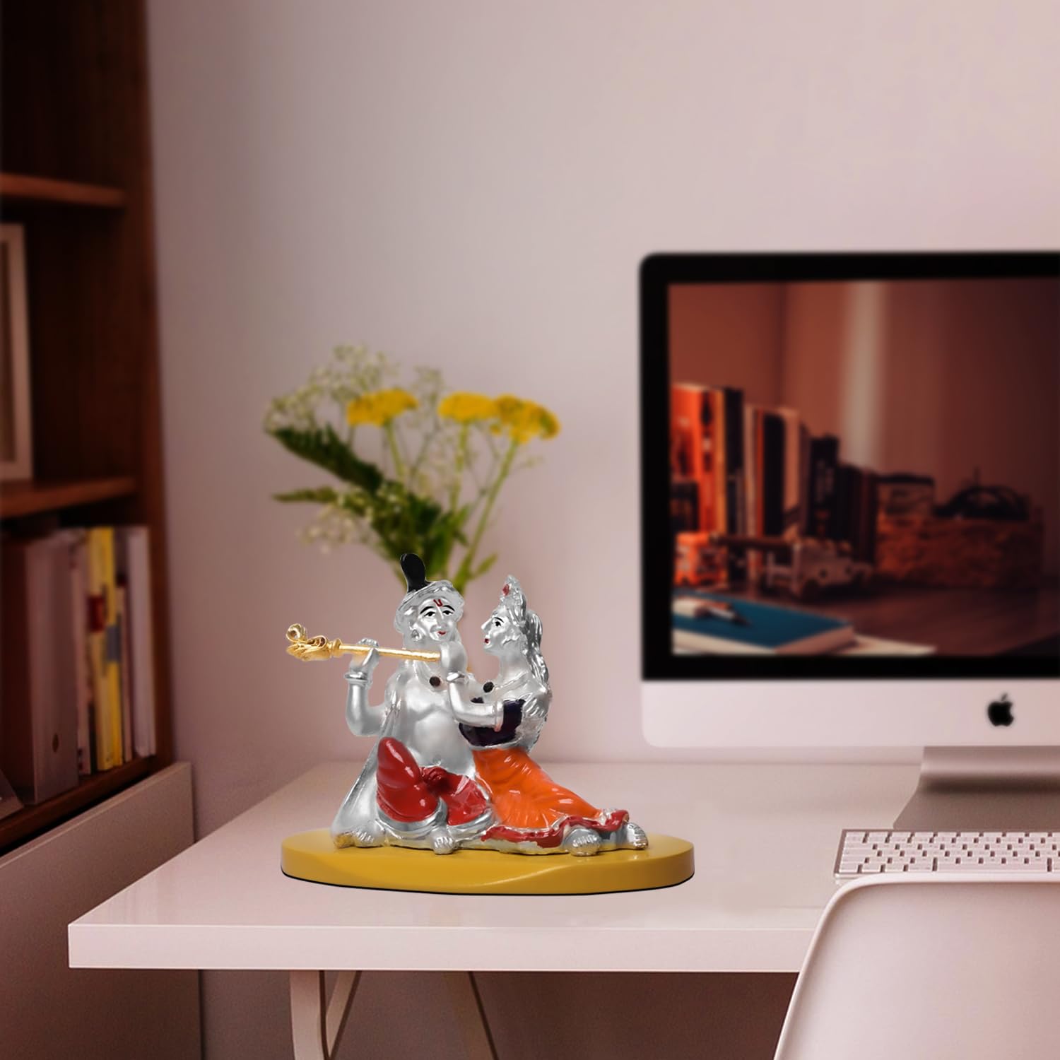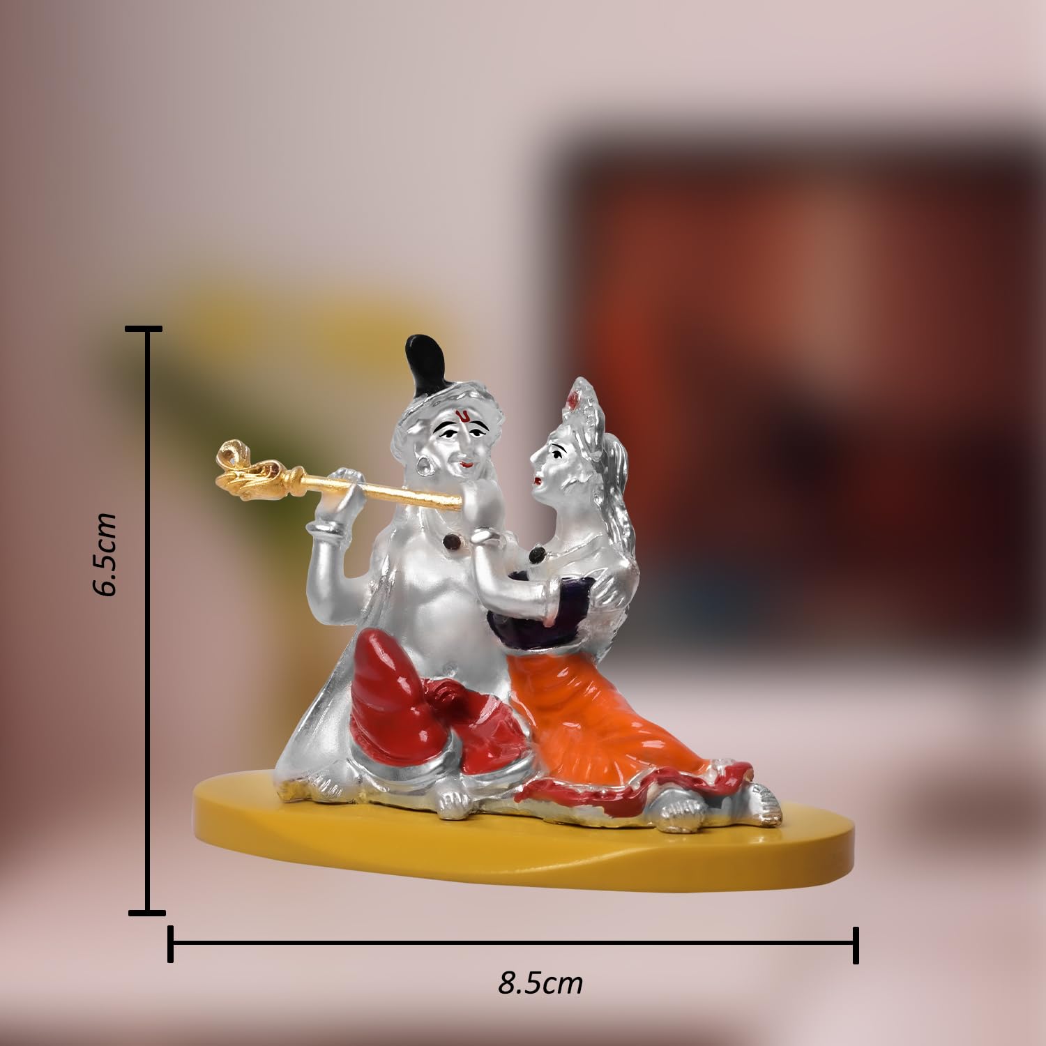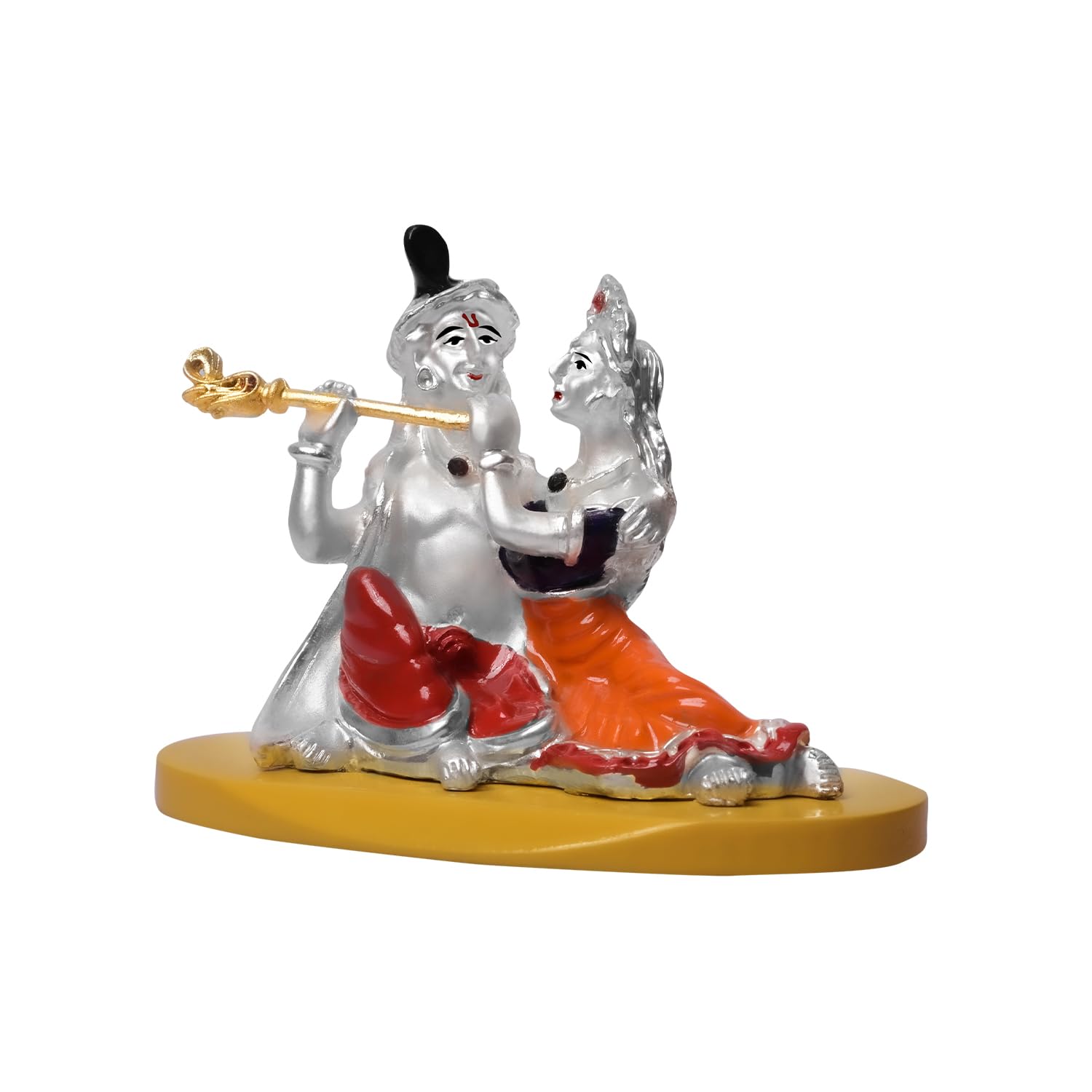 MATERIAL: 999 Silver-Plated infused with Resin this divine idol creates a pleasant atmosphere and adds pure delight to any space. 999 Silver-Plated Sculpture of Radha Krishna lets you delve into a pure ocean of spirituality while maintaining its vibrancy