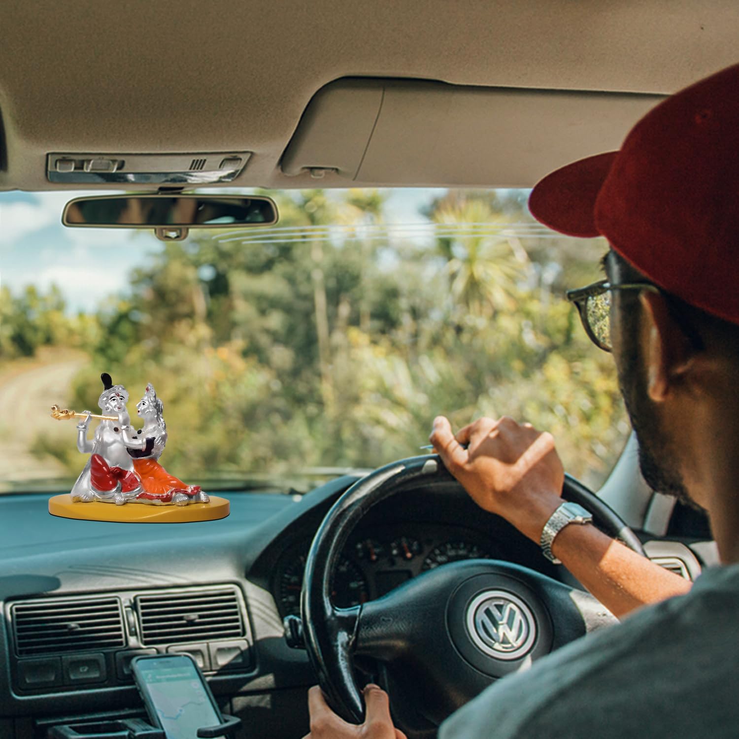 DIVINITI 999 Silver Plated Radha Krishna Decorative Showpiece| Idol for Car Dashboard Home Decor Pooja| Antique Showpieces & Figurines| Radha Krishna Janmashtami Gifts (8.5CMX4.5CMX6CM)
