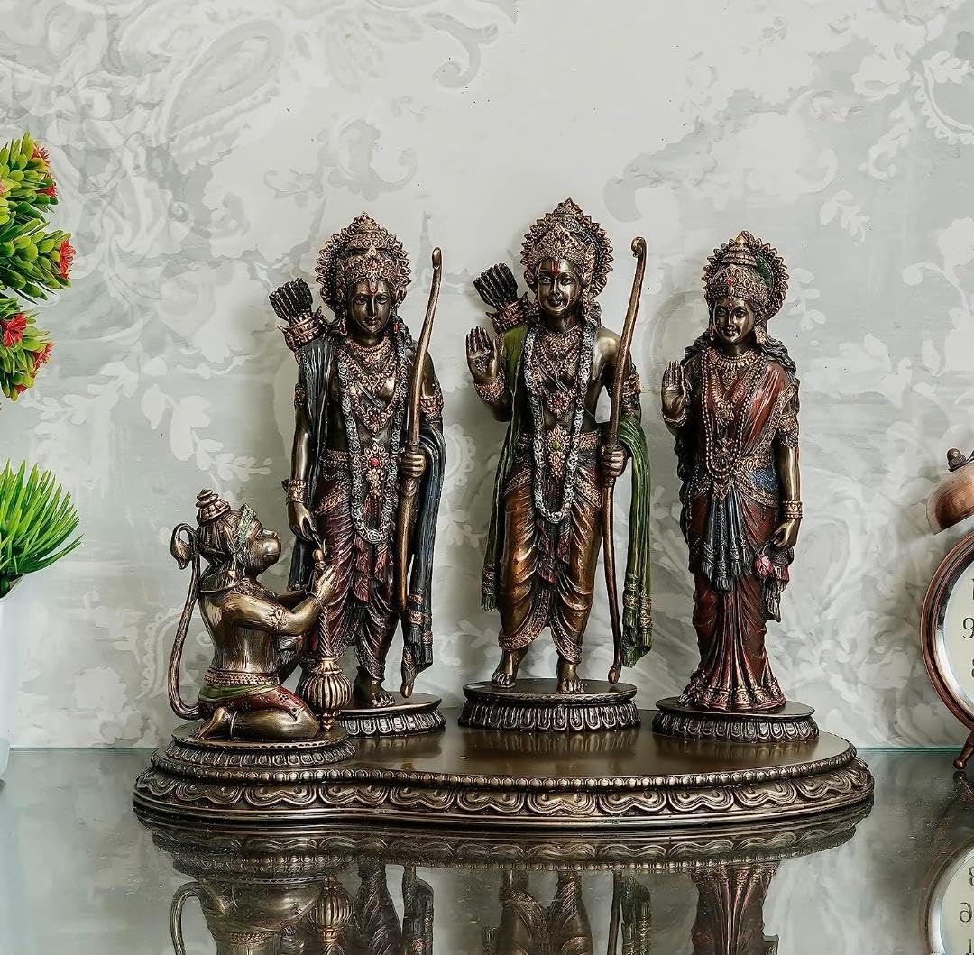 Festive Vibes Polyresin Hindu Lord Ram with laxman and Goddess Sita Devi and Hanuman Statue for Pooja Room&Gift/murti Idol Home &Office Decor Home & Office Decor (7.50x9.50 INCH Inch)
