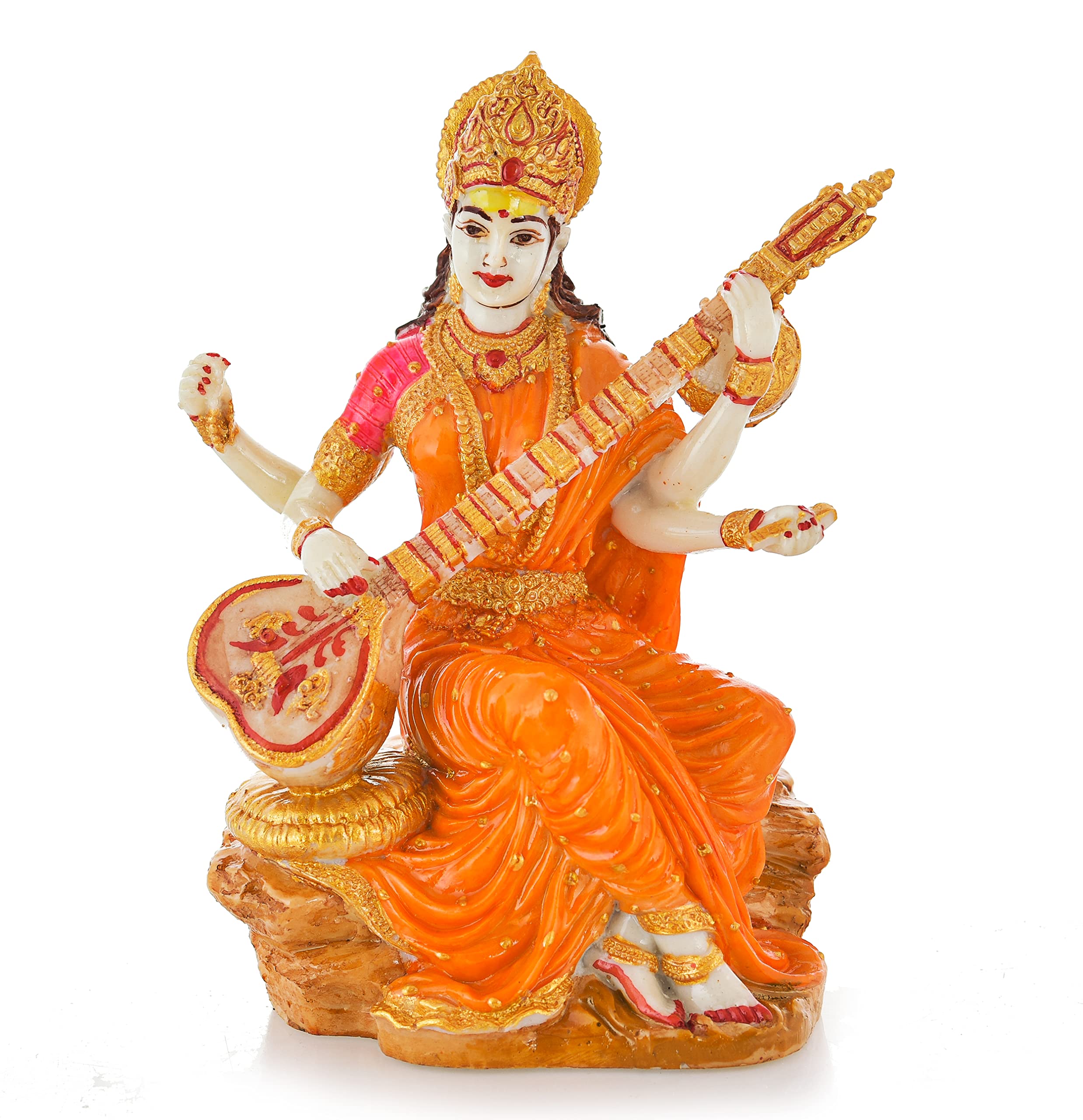 Festive Vibess Idol Figurine Show Piece For Saraswati Ji Polyresin dust Home Decofation.You can place it at your home or on your office desk gift to your loved ones on special occasions/festivals etc. Clean it with a white dry cotton cloth. God Idols / Murti / Figurines / Idol Is Best Gift for Home Marriage Anniversary Parents Mother's day Father's Day. Wedding Gift Birthday House Warming Office / Shop Inauguration Festive Occasions Like Diwali Rakhi Grah Pravesh and Corporate Gifts.