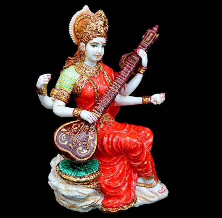 Saraswati is also worshiped as the god of education knowledge wisdom and wealth. Can also be Used for Gifting purpose.Statue is known to Bring prosperity and happiness in your home & Office.Product colour may slightly vary due to photographic lighting sources or your monitor settings. Crafted and manufactured through sand casting technique in north India. Care Instruction - Don't wash use dry/wet cotton cloth to remove dirt.