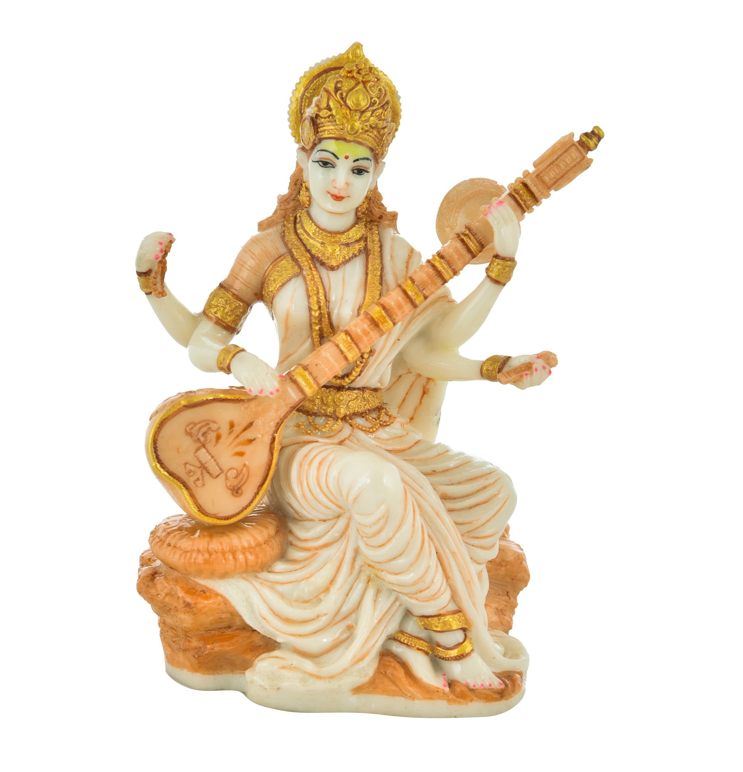 Saraswati is also worshiped as the god of education knowledge wisdom and wealth. Can also be Used for Gifting purpose.Statue is known to Bring prosperity and happiness in your home & Office.Product colour may slightly vary due to photographic lighting sources or your monitor settings. Crafted and manufactured through sand casting technique in north India. Care Instruction - Don't wash use dry/wet cotton cloth to remove dirt.