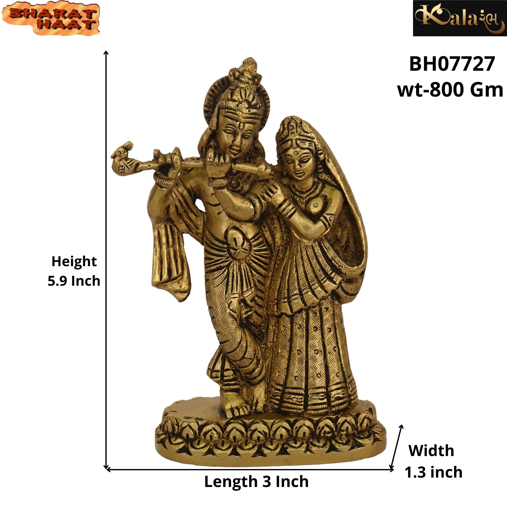 Kalarambh has been in the industry for two decades now. We are a manufacturer of Brass decorative products and export our products to other countries as well.We design develop and manufacture solid brass products such as home decor Pooja products living room and art decor products.Our quality is what we are known for. We do not compromise our product quality. We have an in-house team that manages all our design aspects and work closely with the current trend.Size: 3 x 1.3 x 5.9 inch (LxWxH); 7.62 x 3.302 x 7046 Cm (LxWxH)Package Contain: 1 x Radha Krishna