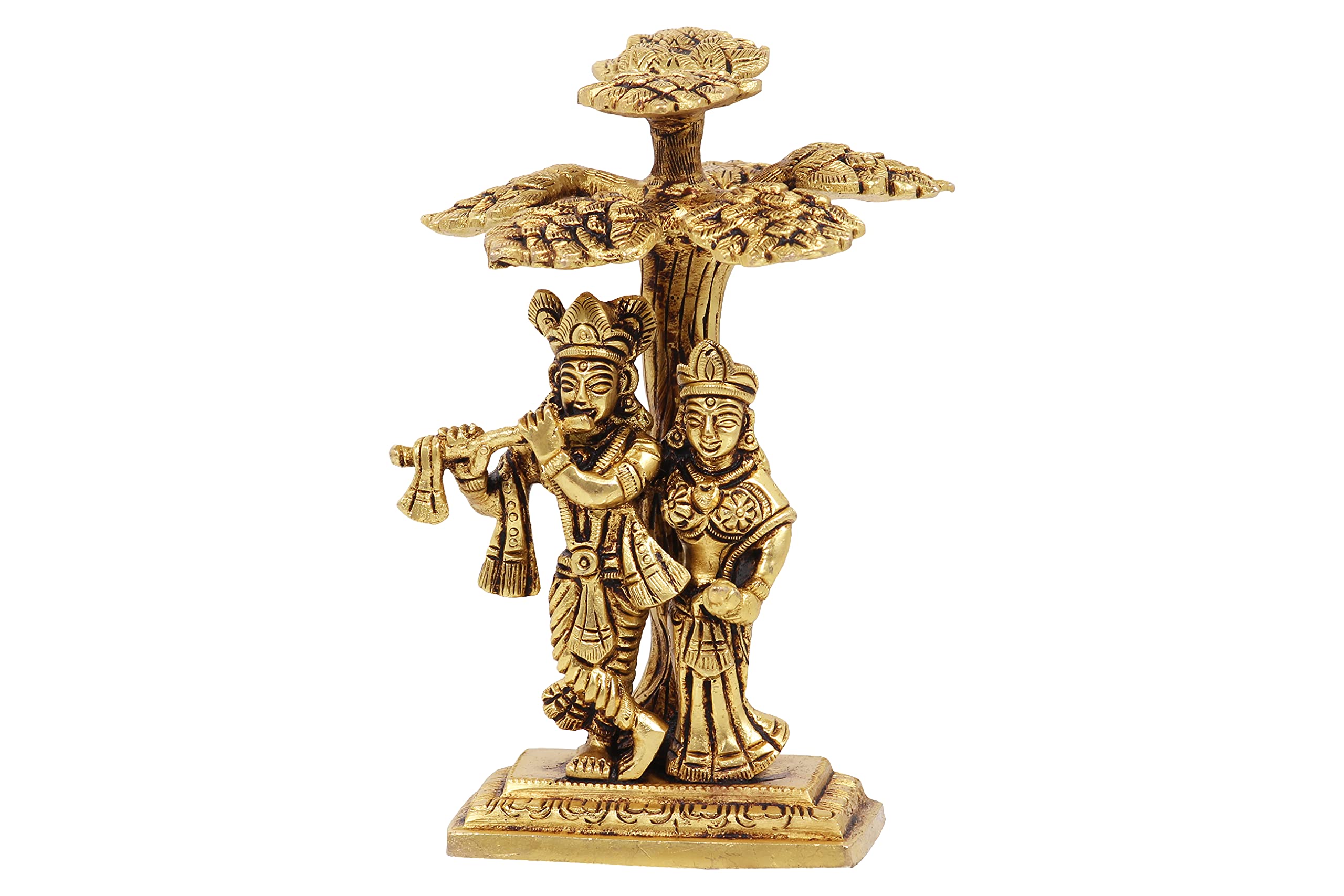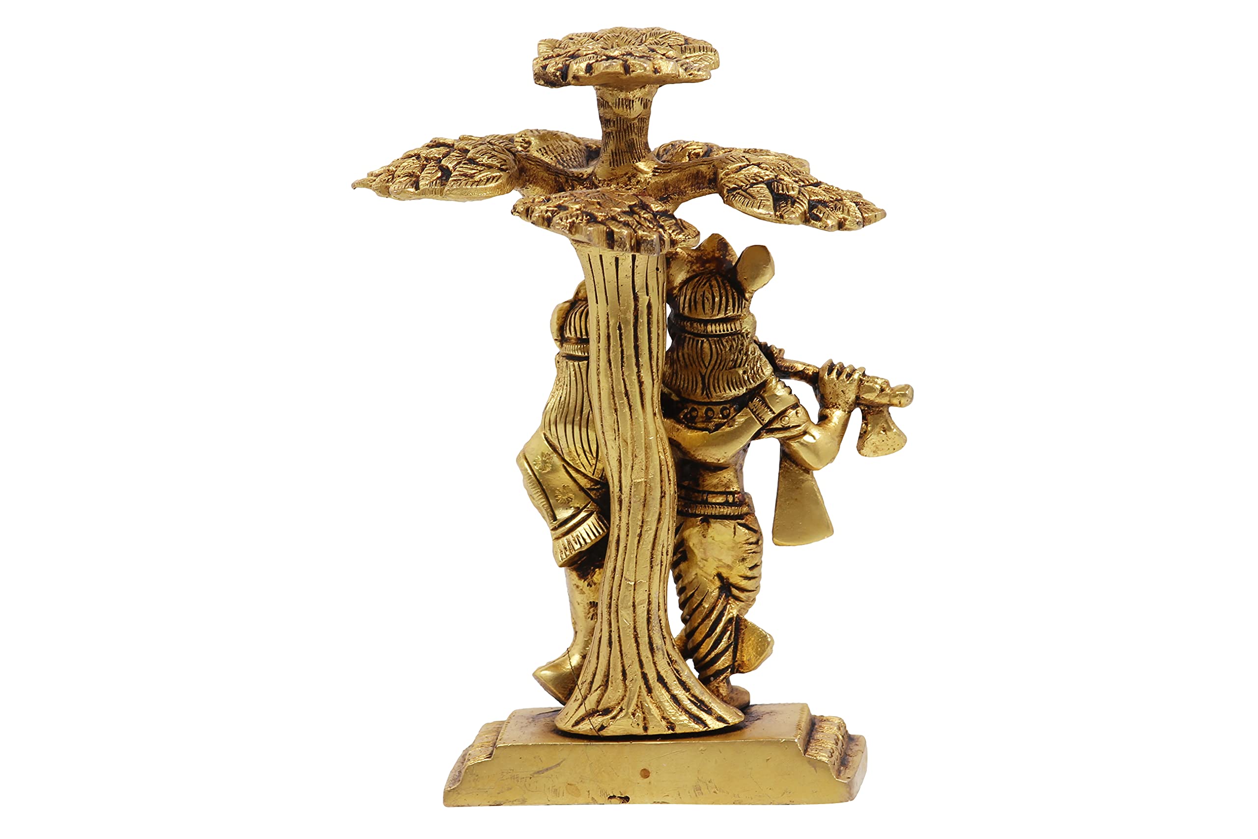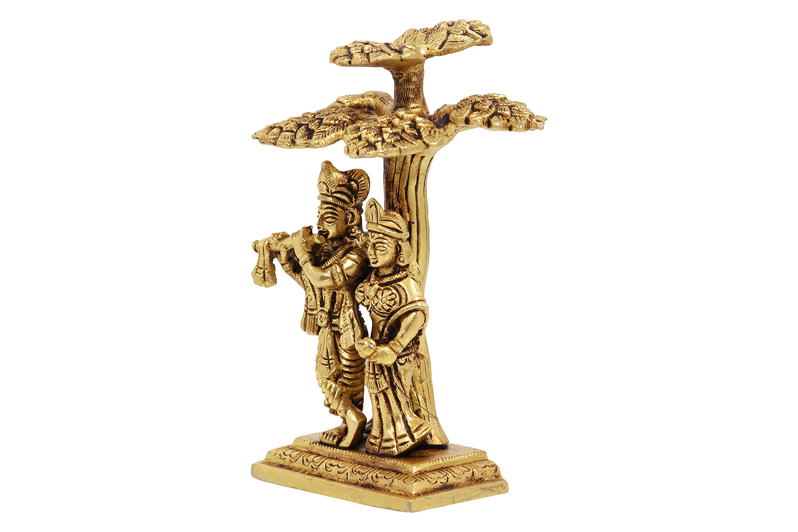 Elevate your living space with this exquisite Radha Krishna statue crafted brass. The intricate detailing and serene expression capture the divine essence making it a perfect addition to your home altar meditation space or as a thoughtful gift for loved ones. Measuring 3.5 x 3.2 x 5.1 inches and weighing 780 grams it exudes elegance and charm. This beautiful piece serves as a reminder of love devotion and spiritual harmony bringing tranquility and positivity to any environment.