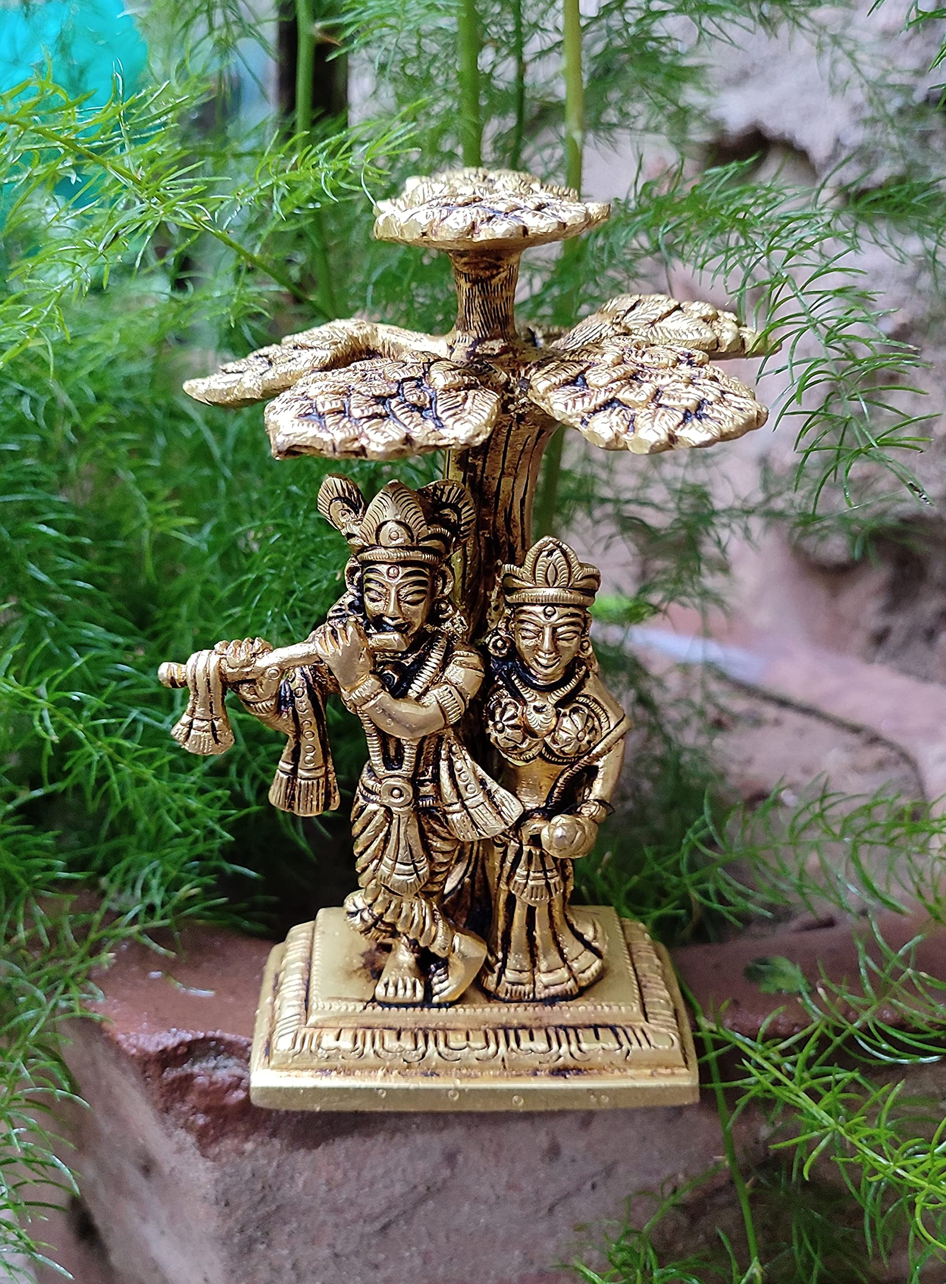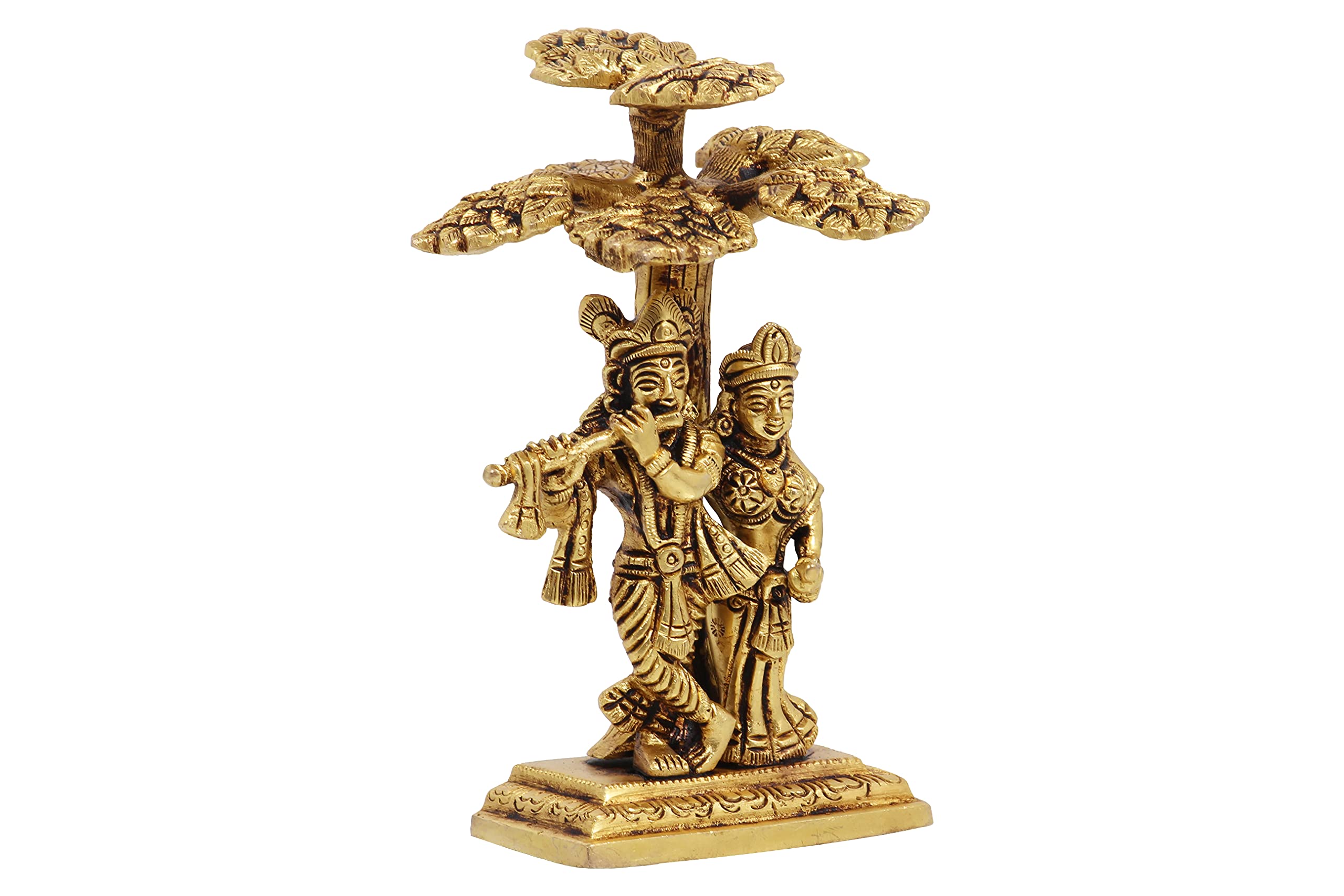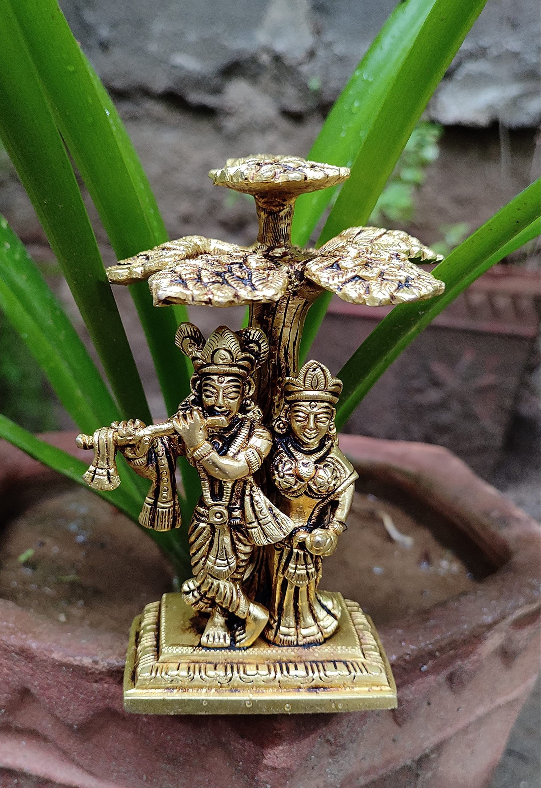 Elevate your living space with this exquisite Radha Krishna statue crafted brass. The intricate detailing and serene expression capture the divine essence making it a perfect addition to your home altar meditation space or as a thoughtful gift for loved ones. Measuring 3.5 x 3.2 x 5.1 inches and weighing 780 grams it exudes elegance and charm. This beautiful piece serves as a reminder of love devotion and spiritual harmony bringing tranquility and positivity to any environment.