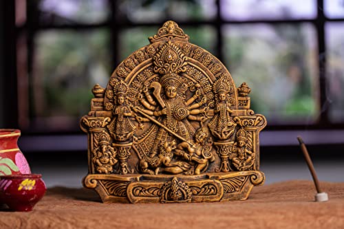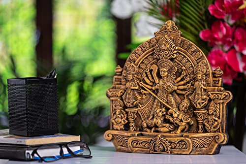 Karru Krafft Handcrafted Terracotta Goddess Durga Idol with Family 11.2" for Pooja and Home Decor Navaratri Decor Office Decor Corporate Gifts Festive Gifts