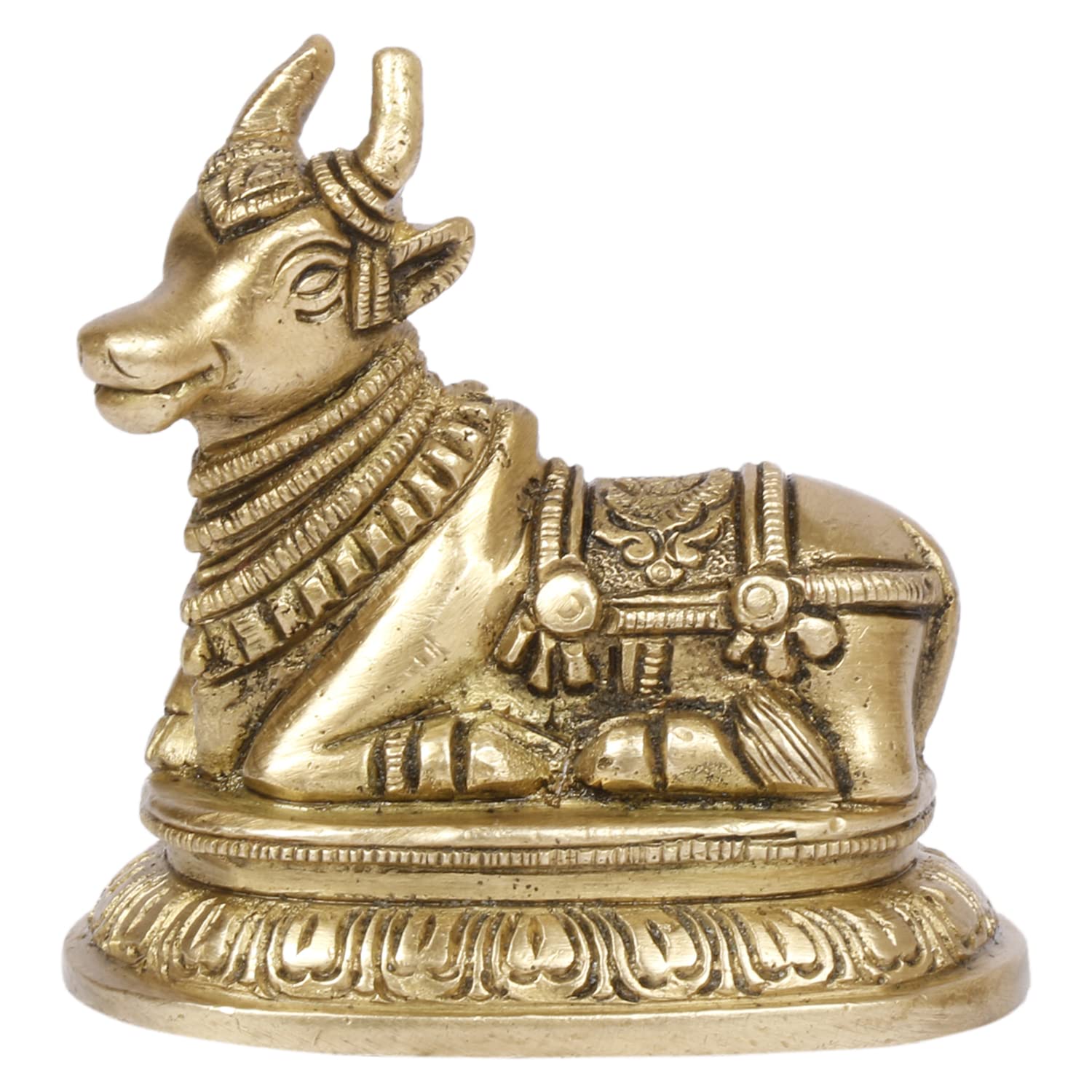 It was Nandi who cursed Ravana (the demon King of Lanka) that his kingdom would be burnt by a monkey (Vanara). And later Hanuman burnt Lanka when he went in search of Sita who was kept prisoner by Ravana in Ashok Vatika. In one puranic story it is stated that once Siva and Parvathi were playing a game of dice. For any game there has to be an umpire who has to declare who is the winner. Siva and Parvathi agreed to have Nandi (the divine bull) as the umpire. Nandi is a favorite of Siva as he is Siva's vehicle. Although Siva lost the game Nandi declared him the winner. It is stated that Parvathi was indignant over Nandi's partiality for Siva and cursed him that he should die from an incurable disease. Thereupon Nandi fell at the feet of Parvathi and pleaded for forgiveness. " Mother forgive me " Should I not show at least this amount of gratitude to one who is my master? Is it not humiliating for me to declare that my master has lost the game? To uphold his honor I no doubt uttered a lie. But am I to be punished with such severity for so small an offence?" Nandi prayed for forgiveness in this manner. Parvathi forgave Nandi and taught him the means to atone for his lapse. She told him. "The Chaturdasi day in the month of Bhadrapada is the day when my son's birthday is celebrated. On that day you have to offer to my son what pleases you most (green grass)". This means that one atones for one's sins when one offers to the Lord what is most pleasing and enjoyable to him. For Nandi the most enjoyable and relishing food is green grass. As directed by Parvathi Nandi worshipped Ganapathi by offering green grass. Nandi was then relieved of his dreaded disease. His health improved and by the grace of Parvathi he was redeemed.