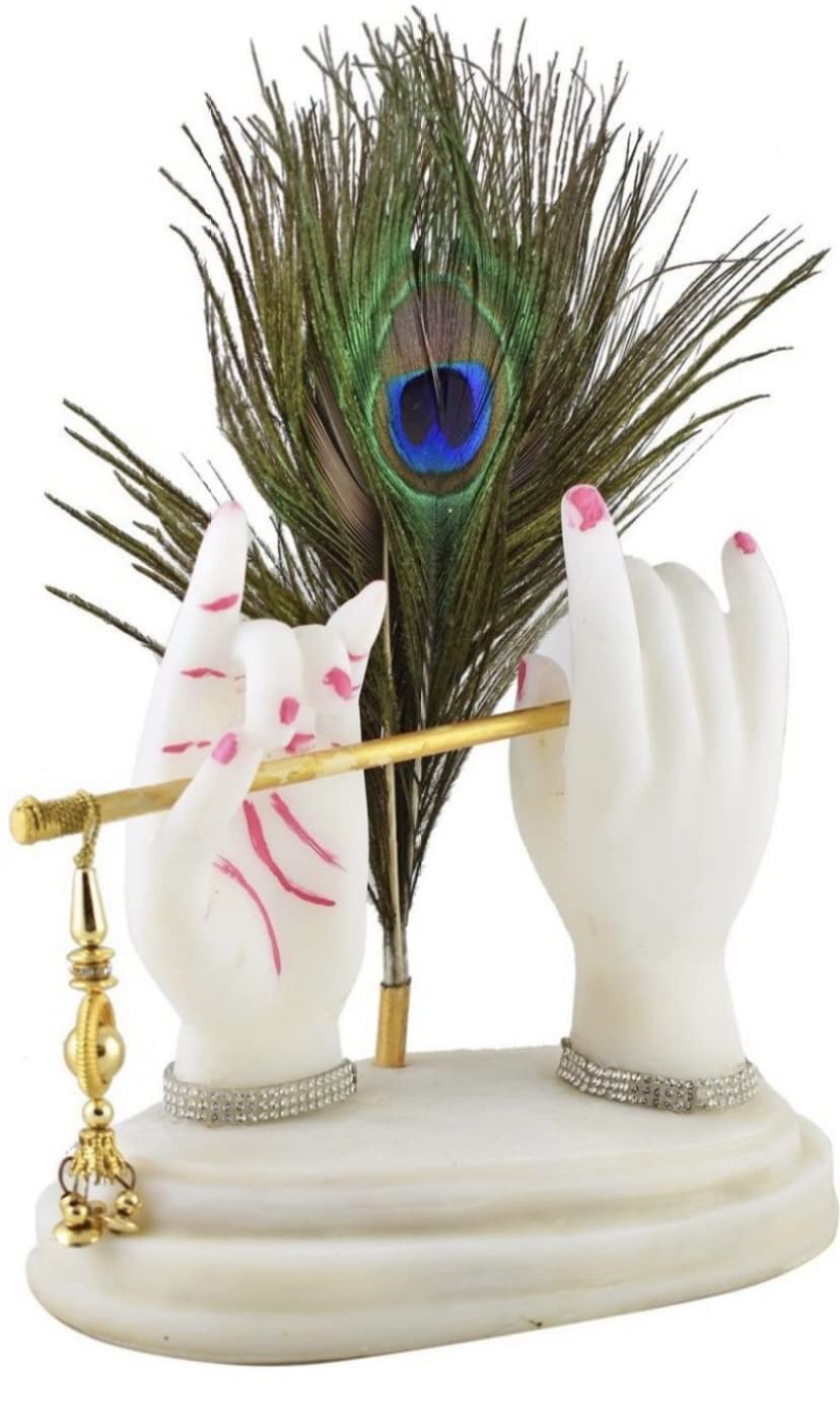 HomeHomeSpiritualIdolsKRISHNAGALLERY1 Home Decoration Showpiece White Krishna Hand Statue with Flute Morpankh for Gift Home Interior Living Room Bedroom Temple Office Decor Idol 8 Inch