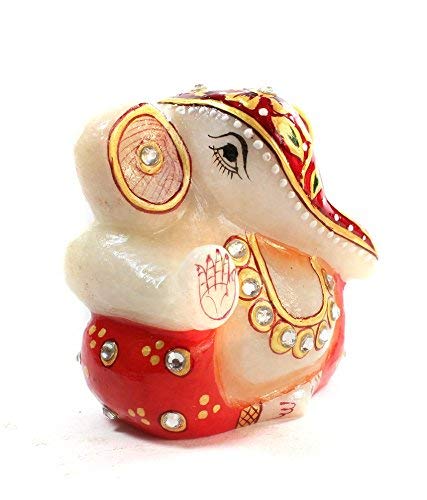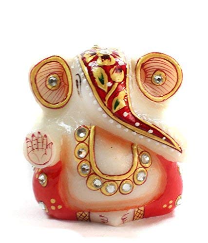 These lord Ganesha can be used as a home decor gift item show piece religious Item etc. According to Hinduism Lord Ganesha has to be worshiped before starting any work which provides positive energy & a good start. Ganesha is also known as ""Vighan Harta"" means absorber of every problem. This Uniquely Design Handcrafted lord Ganesh is made of Marble which gives this chowki the appearance of being coated with luxury. There is simply no substitute for majestic marble. Its multi color combination and decoration makes it attractive. It also makes for a good gifting solution. Actual item might have minor deviation from photo on website"