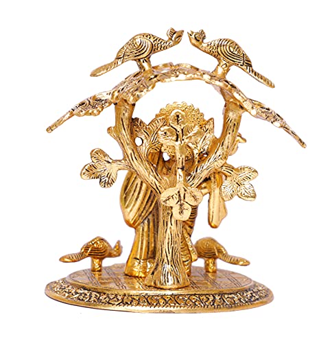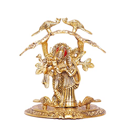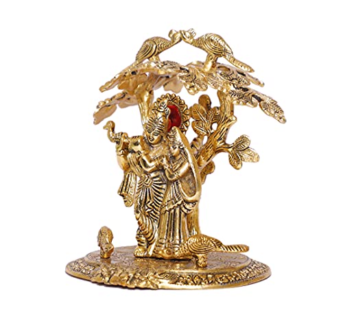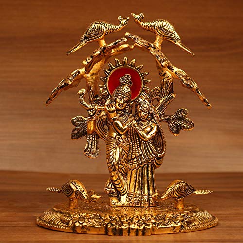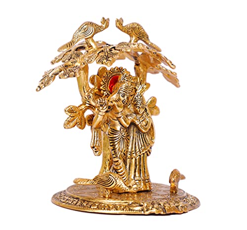 Radha Krishna Playing te Under Tree God Idols Gold Oxidized Finish for Home Decor for Diwali Corporate Gift Return Gifts