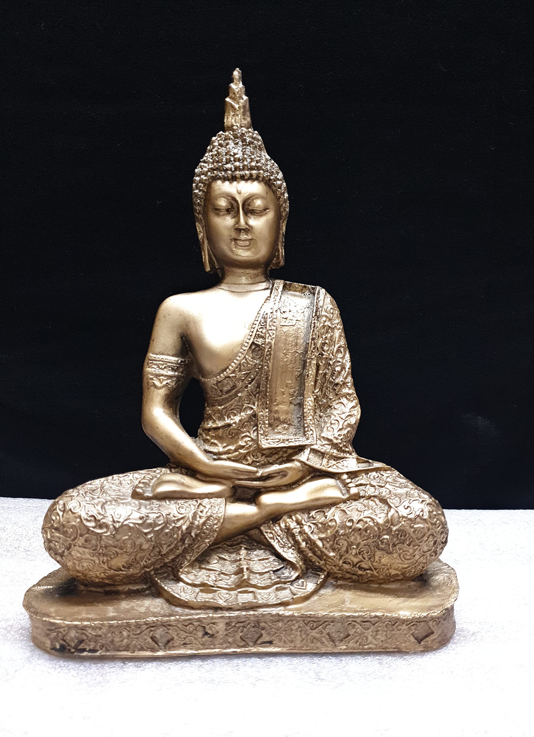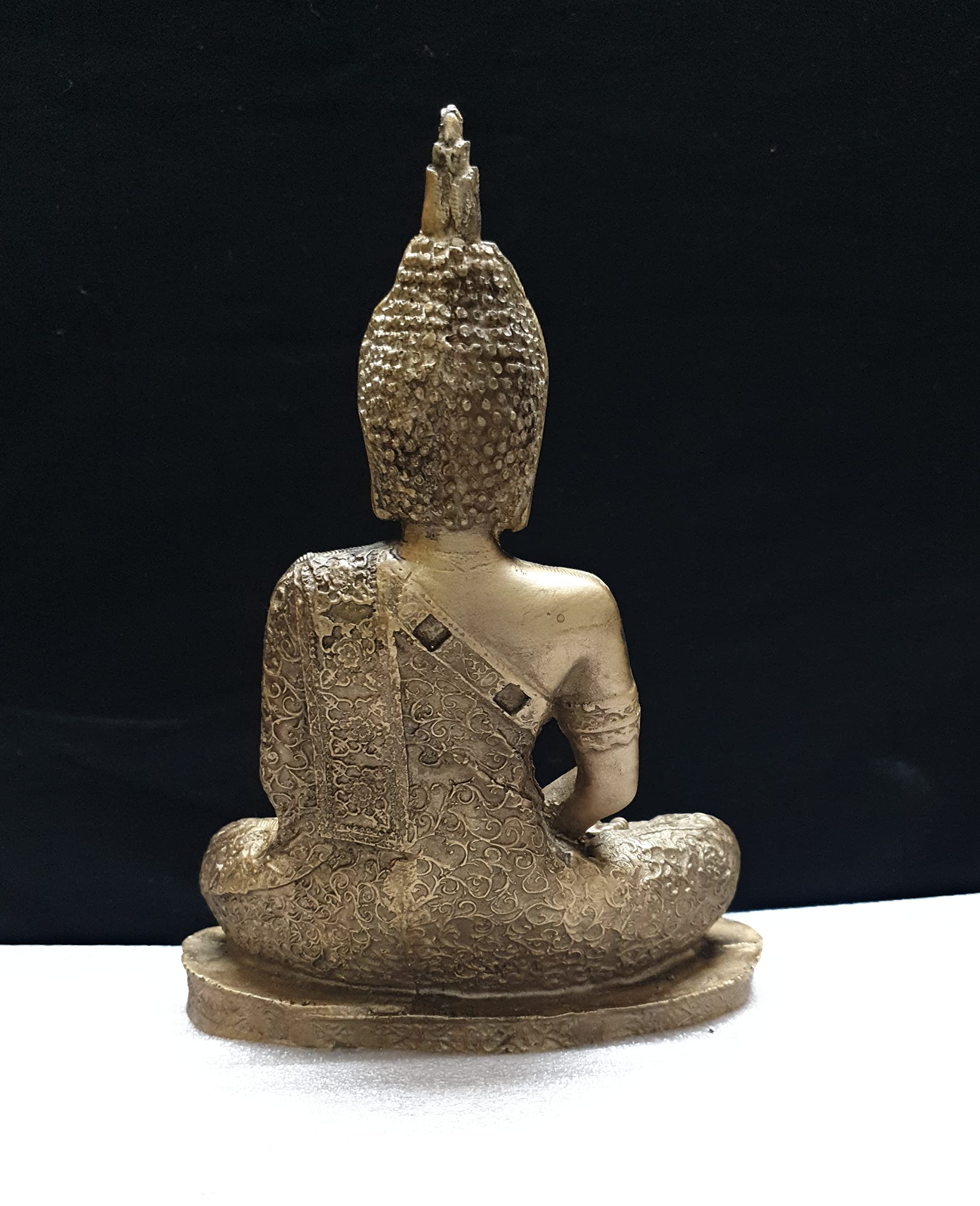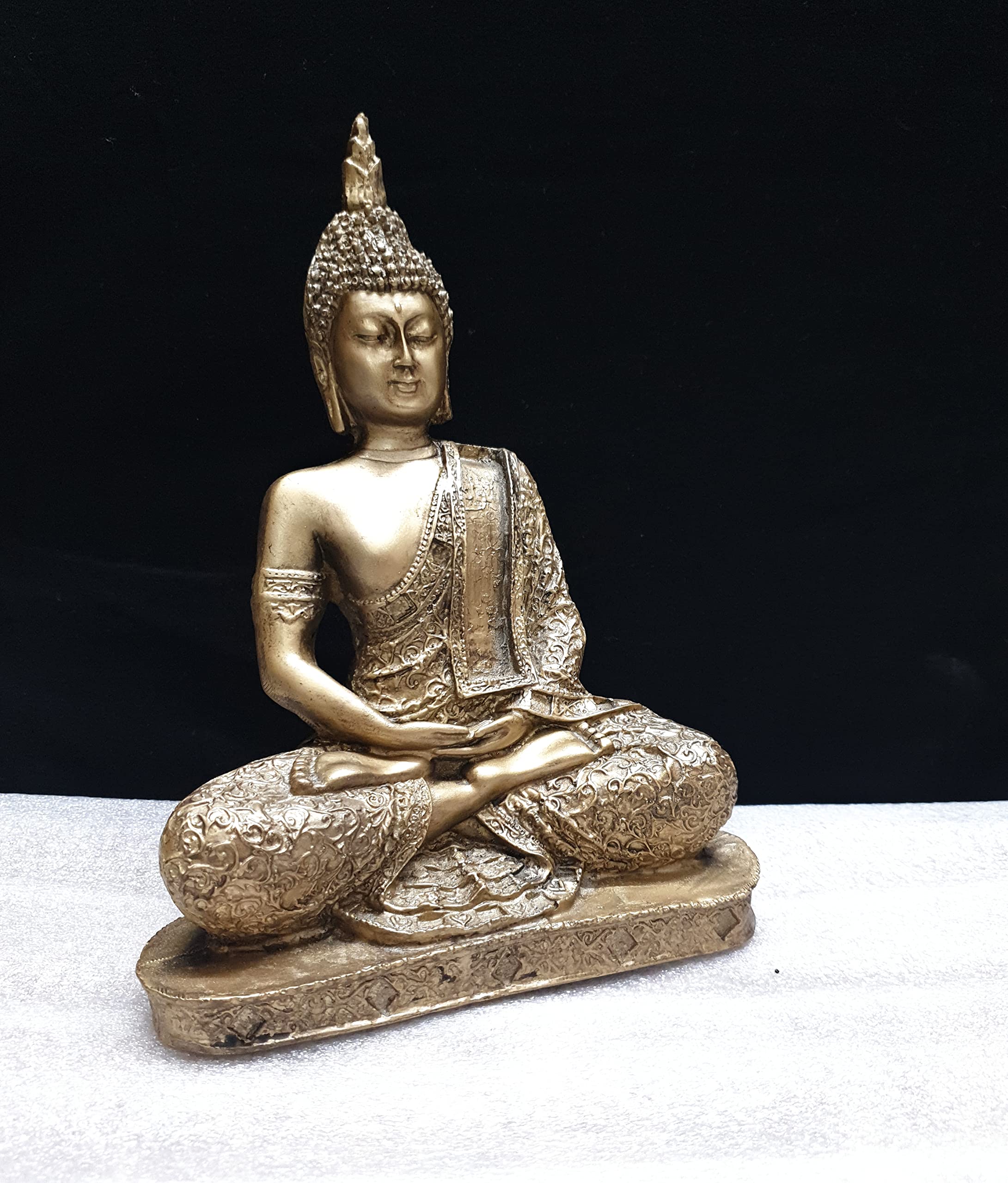 This beautiful product bronze finished showpiece figurine from Mishti Enterprises is a wonderful gifting option for your best friend on her housewarming party. Ideal to keep in your room or living room in a showcase this showpiece of product in a meditating posture is made from polyresin and is handcrafted by skilled artisans using conventional buddha gold color