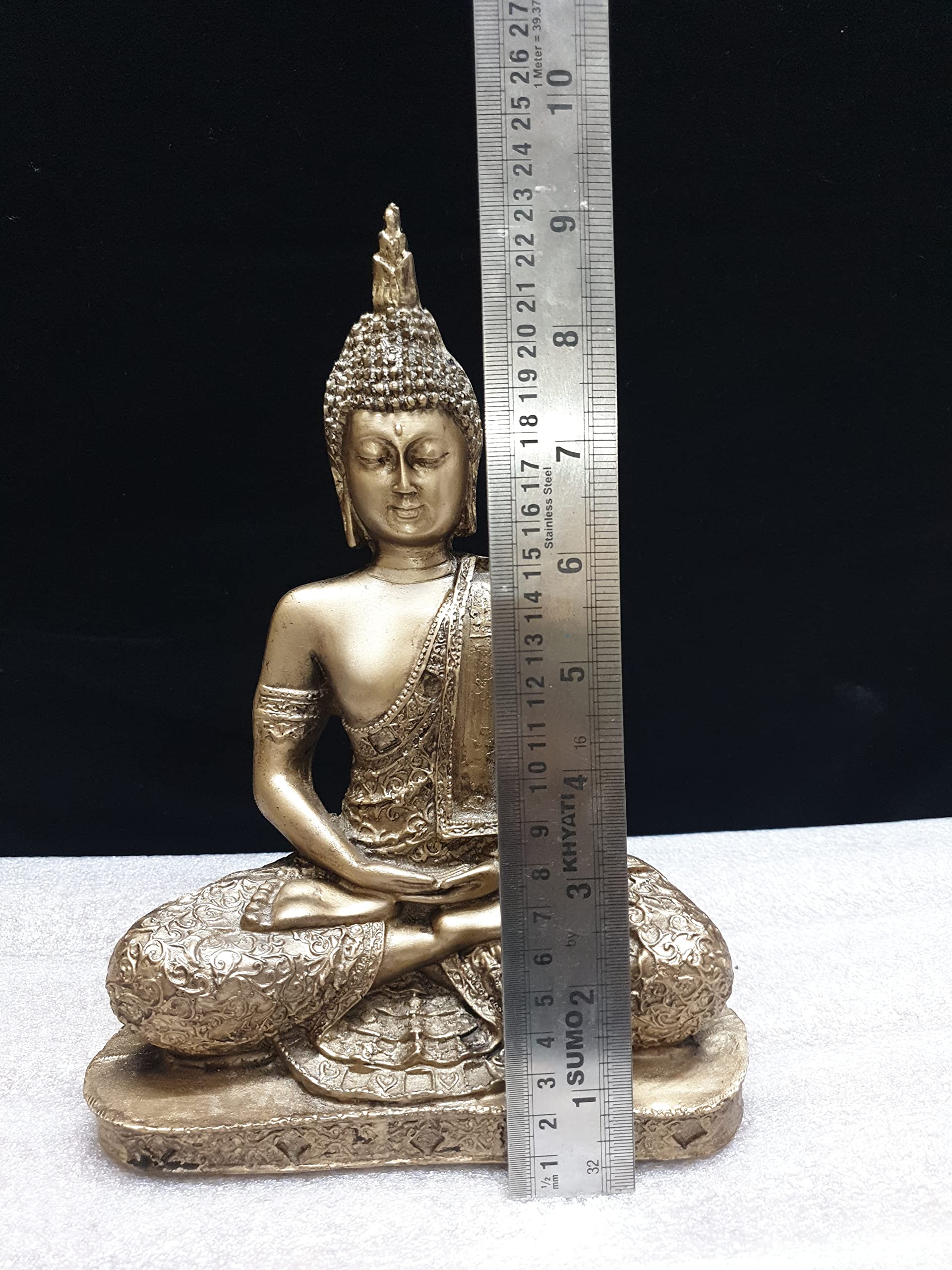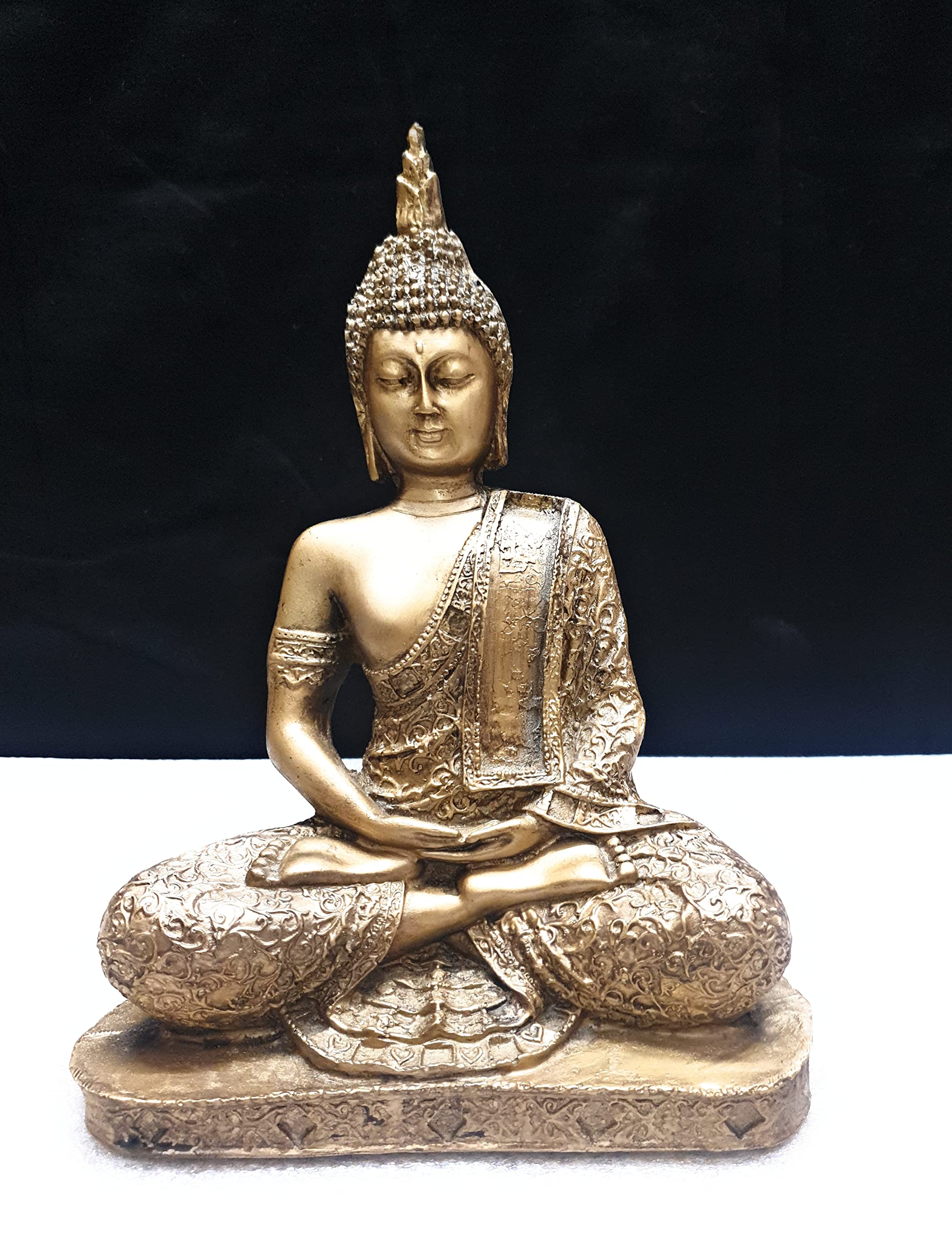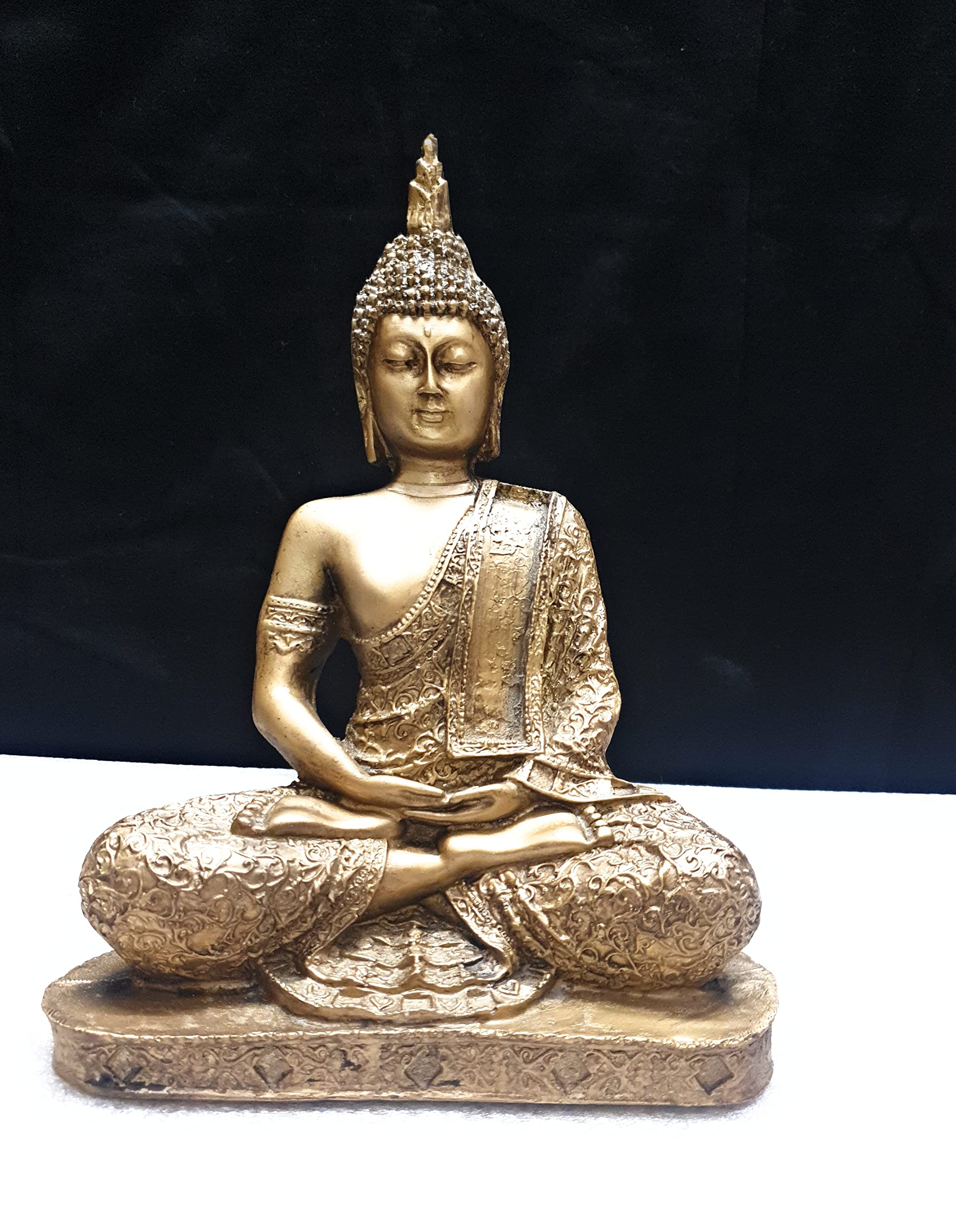 This beautiful product bronze finished showpiece figurine from Mishti Enterprises is a wonderful gifting option for your best friend on her housewarming party. Ideal to keep in your room or living room in a showcase this showpiece of product in a meditating posture is made from polyresin and is handcrafted by skilled artisans using conventional buddha gold color