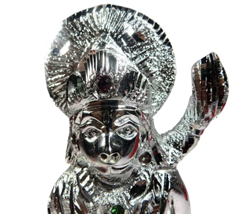 WOOD CARVING WORK Hanuman: German Silver/ White Metal Hanumanji/ Bajrangbali Murti/ Idol Decorative Showpiece (Silver Finish; 4 Inches; 490 Grams)