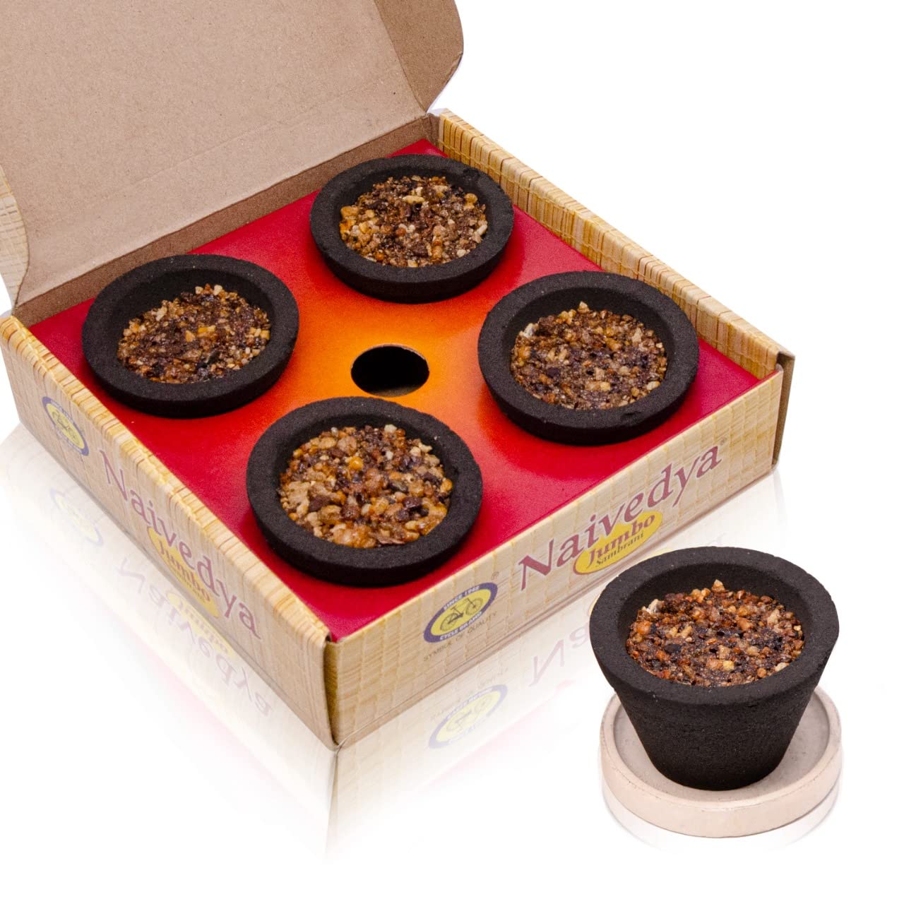 Sambrani Cups from the House of Cycle Pure are ready-to-use Cow Dung Havan Cups for Pooja made using pure desi cow dung Tulsi and other pure ingredients that are sourced sustainably and ethically. When lit the natural herbal fragrance ofTulsienergizes your living spaces and enhances your puja experience. Contains 12 Havan cup's per pack.