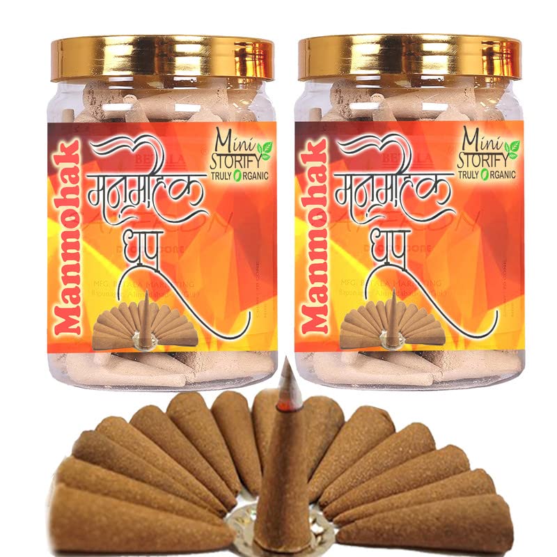 Mini Storify Truly Organic Incense Dhoop Cone for Pooja Home | Pack of 2 Mohak 70 pcs + Mohak 70 pcs