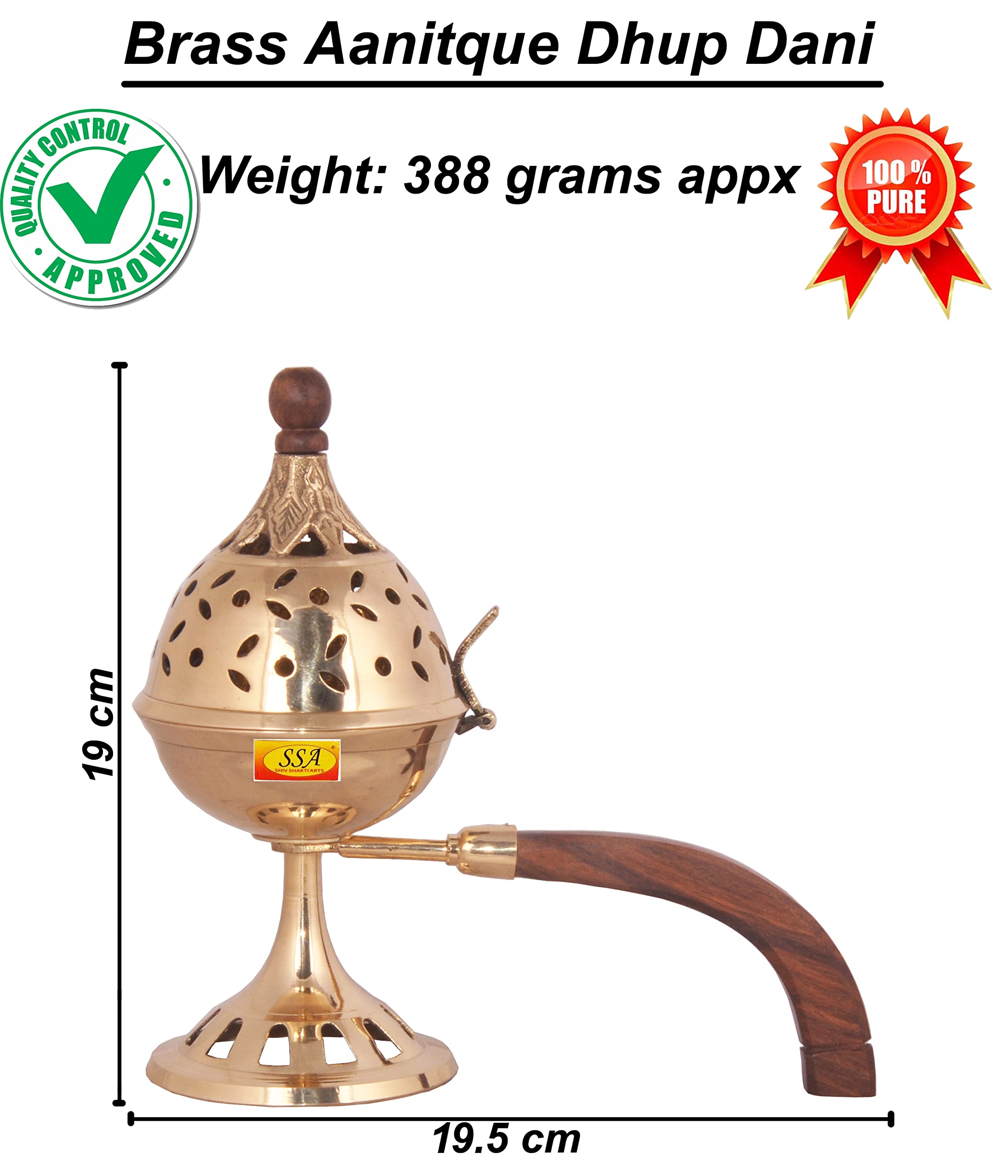 Shiv Shakti Arts Brass Dhuna Loban |Brass Dhoop Dani with Lid| Incense Dhup BurnerDevdas DhupiyaHandcrafted Puja DhoopIncense BurnerLoban BurnerDhoop DhuniSambrani Dhoopwith Wooden Handle 1 pc