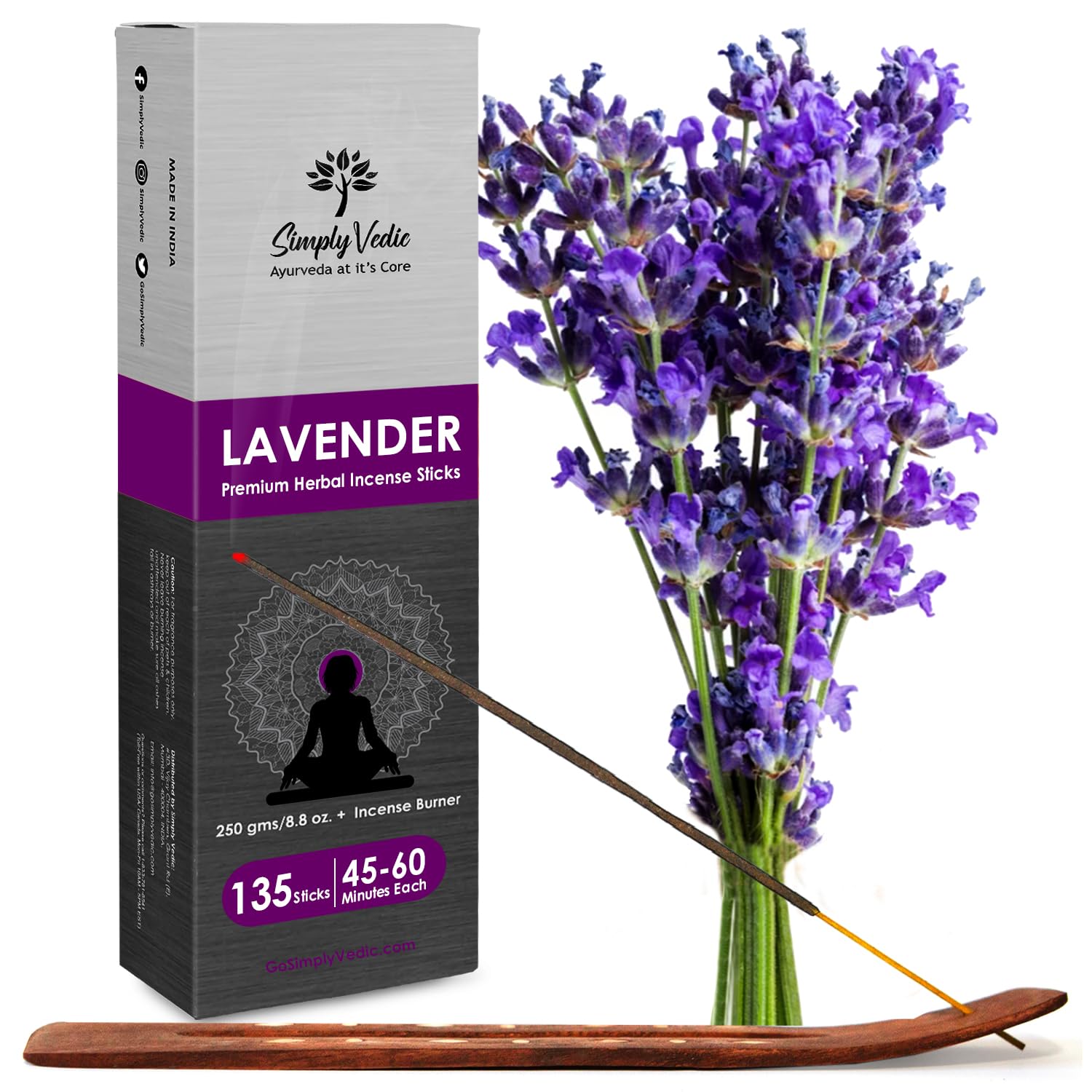 Simply Vedic Premium Handmade Lavender Incense Sticks with Universe Incense Holder Combo Set | Positive Energy Aromatherapy Meditation Yoga Pooja Home (135 Sticks 45 Minutes Each+Ash Catcher Tray)