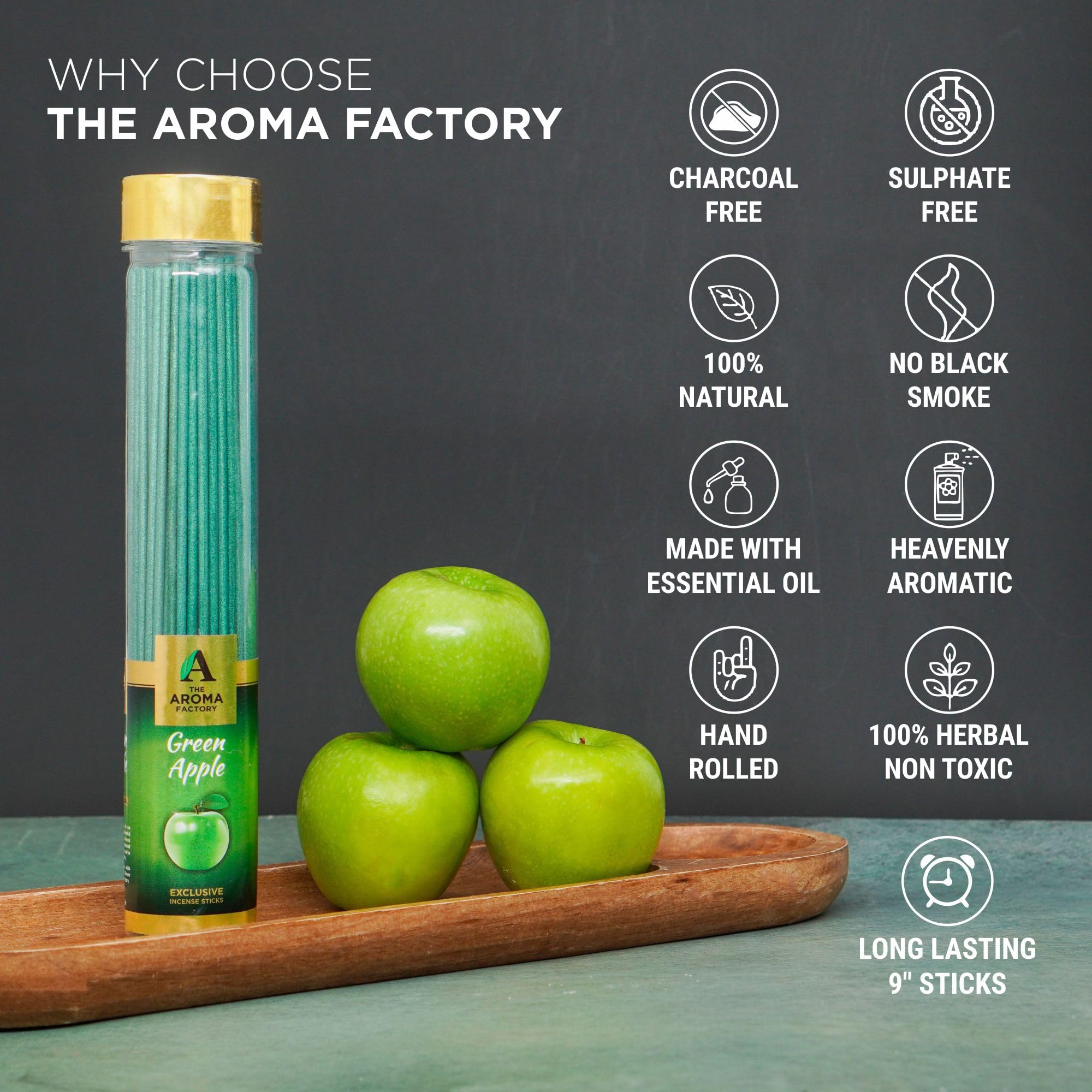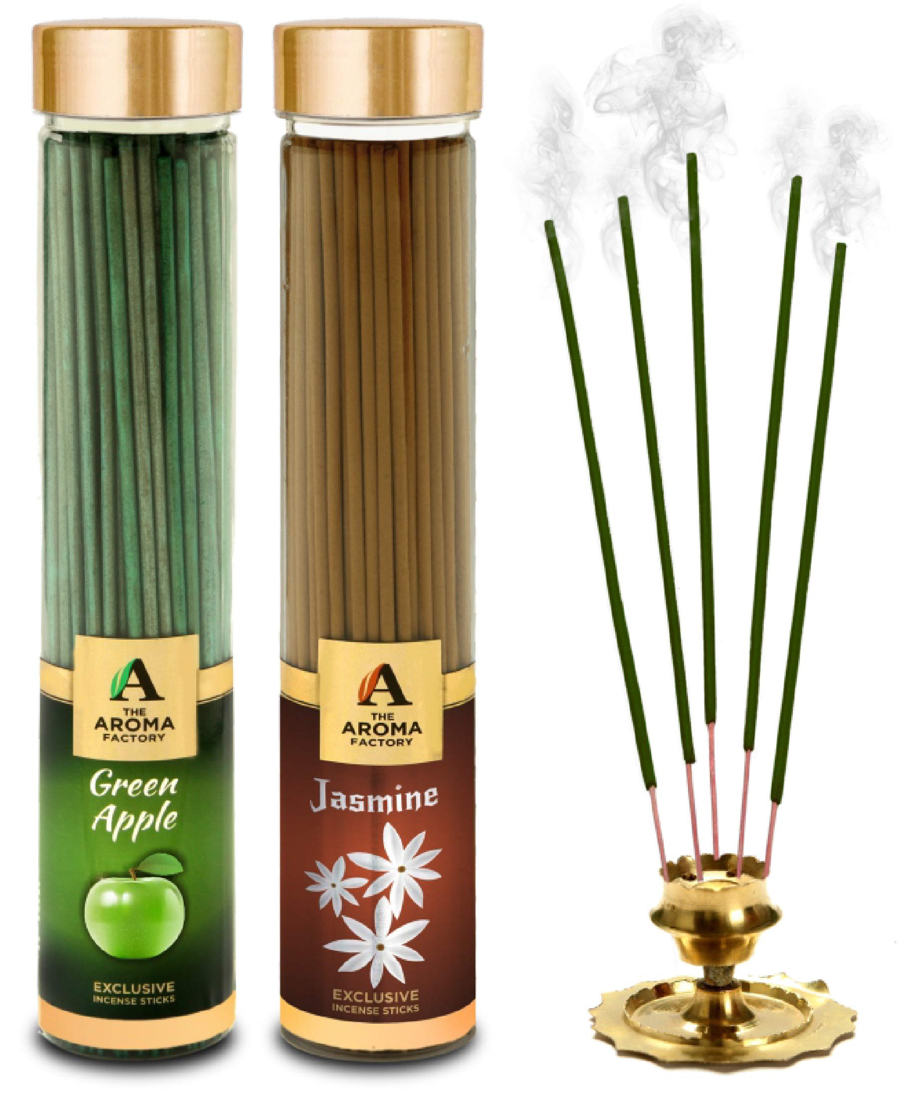 The Aroma Factory Green Apple & Jasmine Chandan Agarbatti for PoojaLuxury Incense Sticks100% Herbal Fragrance Agarbathi (Bottle Pack of 2x100g)