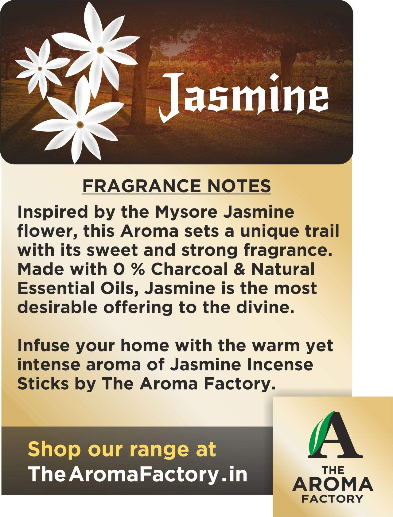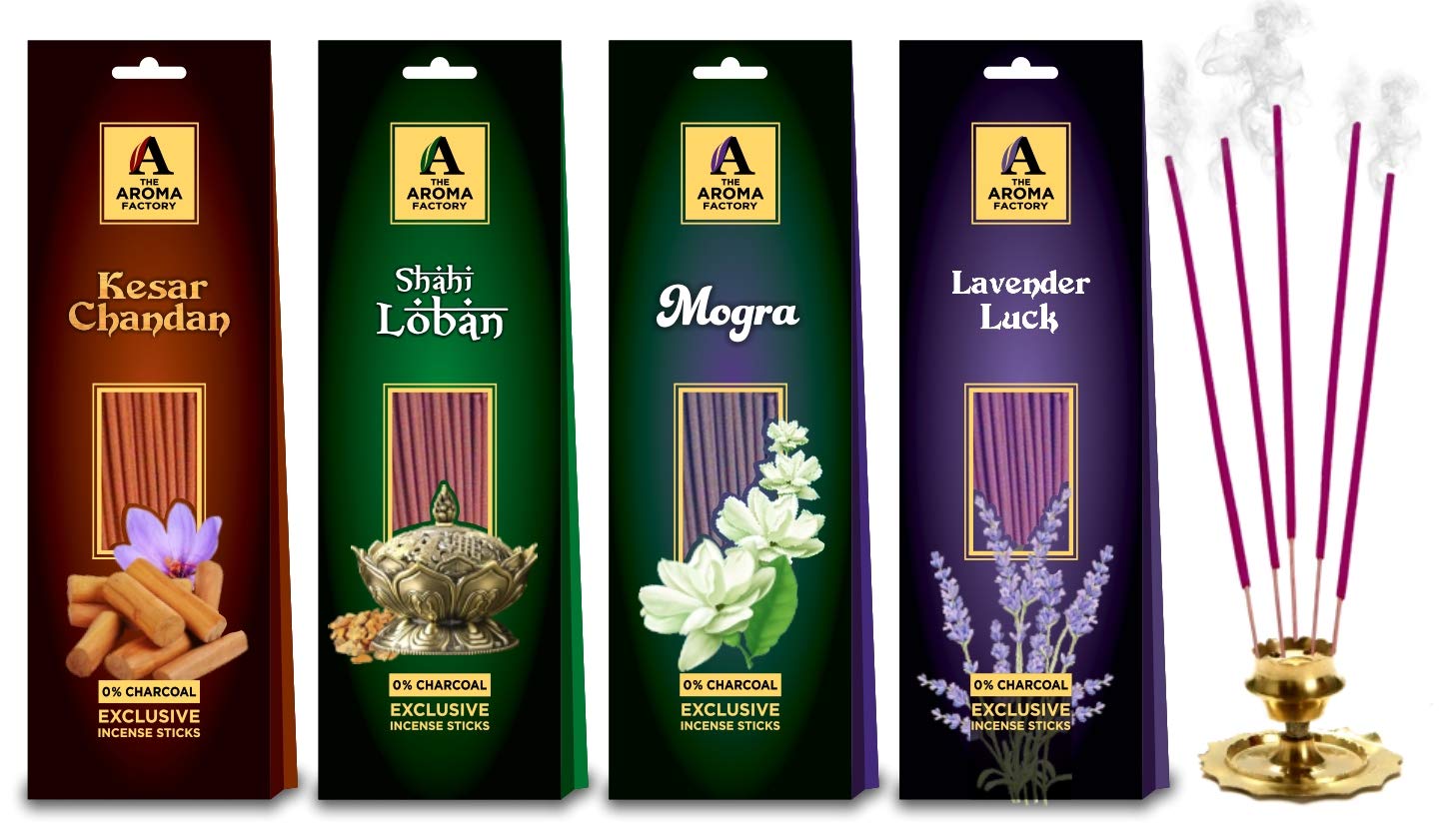 The Aroma Factory Kesar Chandan Sandalwood Loban Mogra & Lavender Incense Sticks Agarbatti {No Charcoal & Low Smoke} (Pack of 4 x 30 sticks) Experience the Soothing Scent of Exclusive Incense Sticks Agarbatti by The Aroma Factory - A Quality product by Panjon Limited. Fragrances specially curated to Rejuvenate your Senses and Calm your Soul. Made with Natural Essential Oils and 0 percent Charcoal Content indulge in the Soothing Aroma of Incense Sticks by The Aroma Factory. Try all fragrances of Agarbatti and Dhoop Batti by The Aroma Factory : Chandan Loban Gugal Mogra Rose Lavender White Sage Sandalwood Attar Jannat Ul Firdaus Mantra masala Citronella Patchoulli Chocolate Green Apple Strawberry Pineapple Jasmine.Incense Sticks Agarbatti sandalwood agarbathi agarbati dhoop dhoopbatti dhoopbati dhoop batti agarbathies incensestick incensesticks incense aroma meditation pooja puja charcoalfree. Suitable for gifting : Add more aroma to your loved oneââ¬â¢s life by getting them these fragrance sticks on occasions such as Diwali Rakhi and other festive events. 100% Quality Assured.