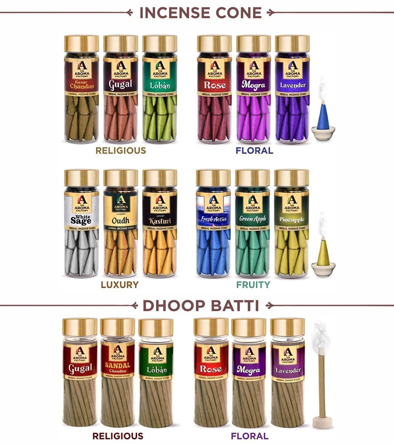 The Aroma Factory Patchouli & Mogra Incense Sticks Agarbatti (Charcoal Free & Low Smoke) Bottle Pack of 2 x 100 Experience the Soothing Scent of Exclusive Incense Sticks Agarbatti by The Aroma Factory - A Quality product by Panjon Limited. Fragrances specially curated to Rejuvenate your Senses and Calm your Soul. Made with Natural Essential Oils and 0 percent Charcoal Content indulge in the Soothing Aroma of Incense Sticks by The Aroma Factory. Try all fragrances of Agarbatti and Dhoop Batti by The Aroma Factory : Chandan Loban Gugal Mogra Rose Lavender White Sage Sandalwood Attar Jannat Ul Firdaus Citronella Patchoulli Chocolate Green Apple Strawberry Pineapple Jasmine.Incense Sticks Agarbatti sandalwood agarbathi agarbati dhoop dhoopbatti dhoopbati dhoop batti agarbathies incensestick incensesticks incense aroma meditation pooja puja charcoalfree. Suitable for gifting : Add more aroma to your loved oneâs life by getting them these fragrance sticks on occasions such as Diwali Rakhi and other festive events. 100% Quality Assured.