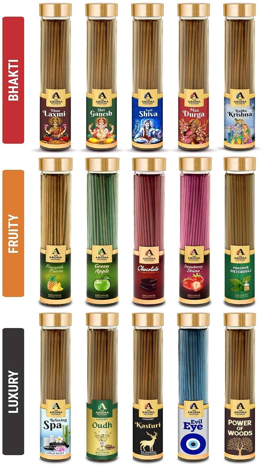 The Aroma Factory StrawberryGugal Kapoor & Pineapple Agarbatti for PoojaLuxury Incense100% Herbal Fragrance Agarbathi 0% Surphates (Bottle Pack of 3x100g)