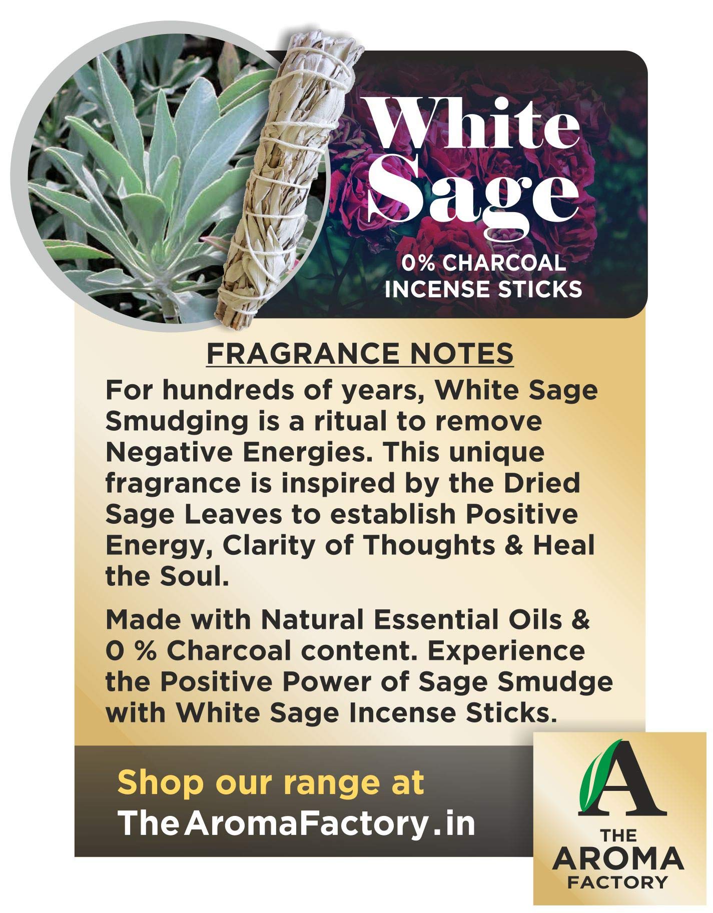 The Aroma Factory White Sage Loban & Fresh Active Incense Stick Agarbatti (Zero Charcoal & 100% Herbal) Bottle Pack of 3 x 100 Experience the Soothing Scent of Exclusive Incense Sticks Agarbatti by The Aroma Factory - A Quality product by Panjon Limited. Fragrances specially curated to Rejuvenate your Senses and Calm your Soul. Made with Natural Essential Oils and 0 percent Charcoal Content indulge in the Soothing Aroma of Incense Sticks by The Aroma Factory. Try all fragrances of Agarbatti and Dhoop Batti by The Aroma Factory : Chandan Loban Gugal Mogra Rose Lavender White Sage Sandalwood Attar Jannat Ul Firdaus Citronella Patchoulli Chocolate Green Apple Strawberry Pineapple Jasmine.Incense Sticks Agarbatti sandalwood agarbathi agarbati dhoop dhoopbatti dhoopbati dhoop batti agarbathies incense stick incense sticks aroma meditation pooja puja charcoalfree. Suitable for gifting : Add more aroma to your loved oneâs life by getting them these fragrance sticks on occasions such as Diwali Rakhi and other festive events. 100% Quality Assured.