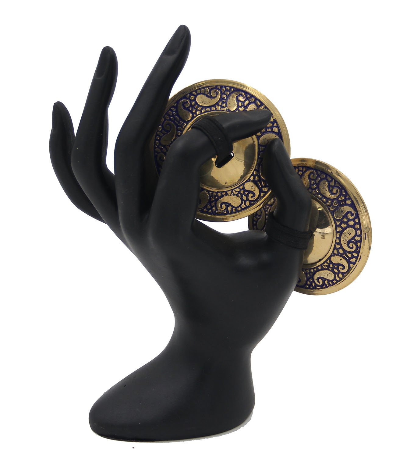 TIBETAN RITUAL CURTAIN 2 Pairs Pro Brass Fingers Cymbal Zills Belly Dancing Silk Pouch (Blue)