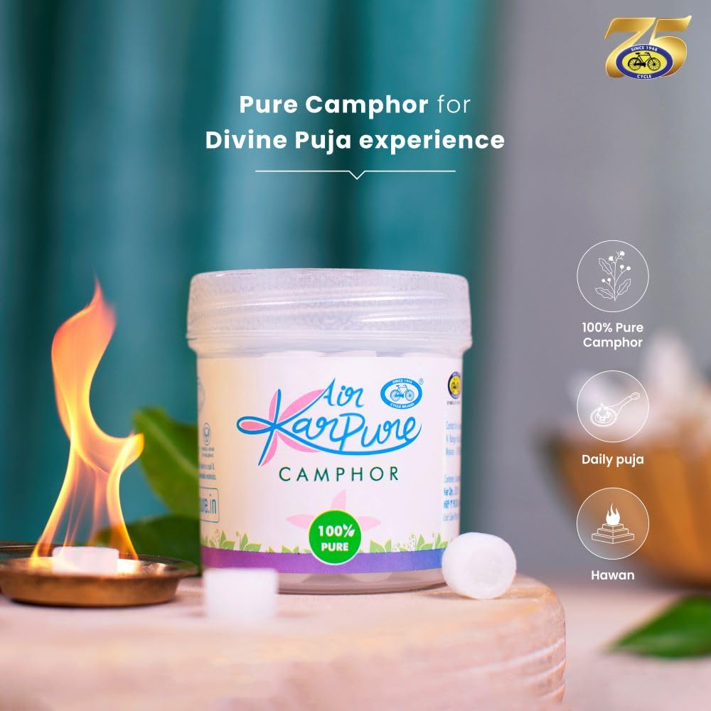 Cycle Karpure Camphor Premium Vapouriser with Pet jar Camphor Box (52 Nos.) Pure Camphor Vapors