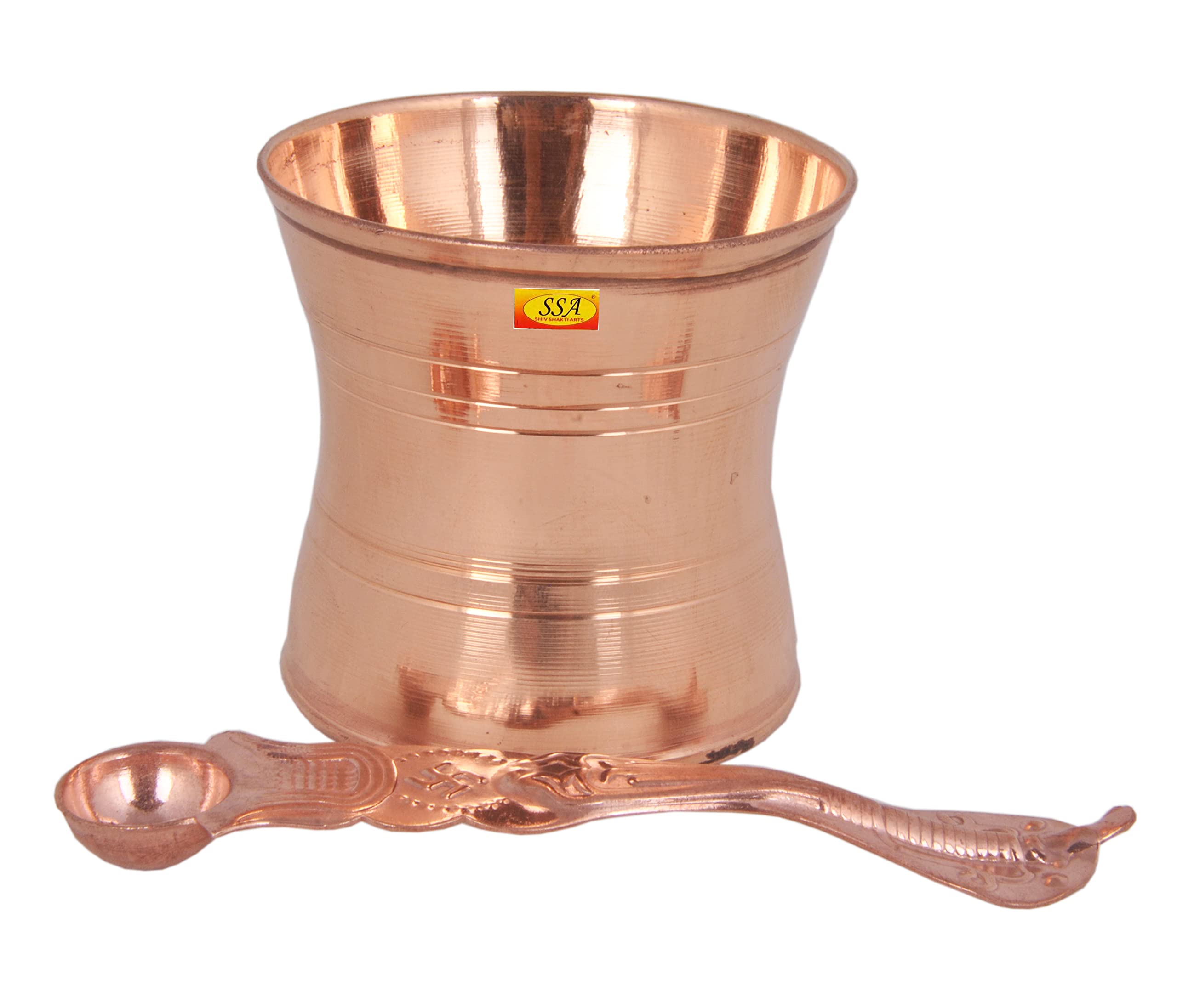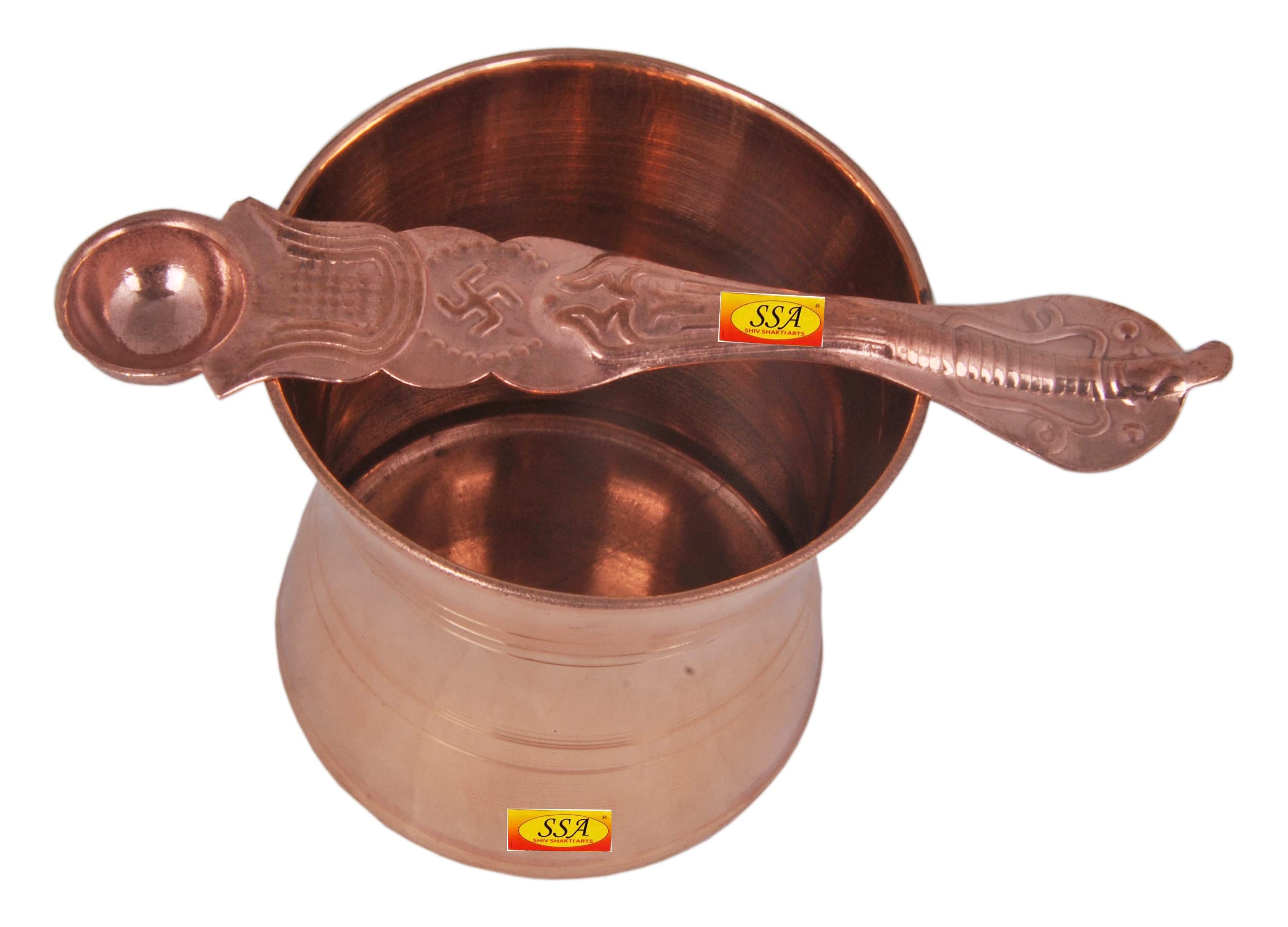 SHIV SHAKTI ARTS Relish Indian cuisine in Indian style! This is a set of centerpiece serve-ware for Indian food. Serve Indian dishes to your friends and family in this unique and ethnic looking centerpiece serve ware. With this serving utensil set your Indian style dining experience goes several notches up. The material used is food grade. Hammered Copper is used only on the outside of the utensil and does not come in contact with the food. Only the high quality food grade stainless steel is in contact with the food. Two layers of metal with air cushion ensure that the food stays warm much longer. Serving dinner in this dinnerware handi would be unforgettable experience.