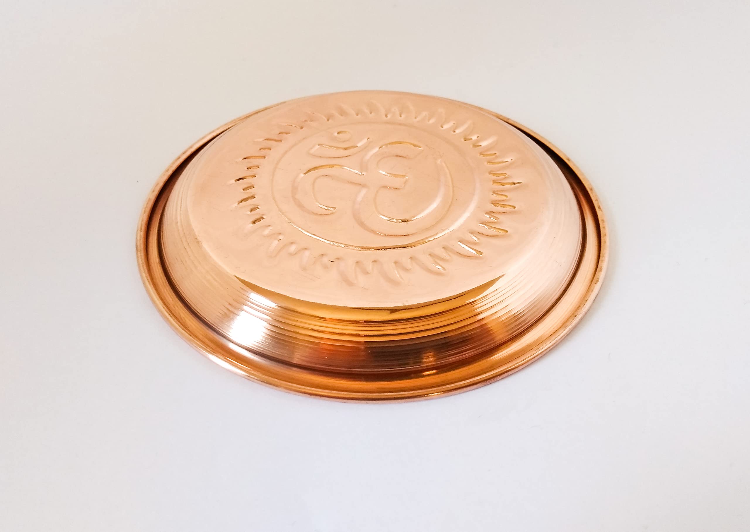 This small copper plate has a Handcrafted Diameter of 5 Inches. This is a delicate lightweight plate. Unadulterated Copperplate. This Beautiful Copper Plate can be utilized for serving Diya plates prasadam plates or small idol plates in the home temple pooja room and is exceptionally engaging and eye-catching. Simple to use and clean. Ideal for Diya plate god idol plate bhog Prasadam Prashad plate/thali/bowl/ Patra for pooja home mandir aarti harathi puja item pooja Multipurpose plate.