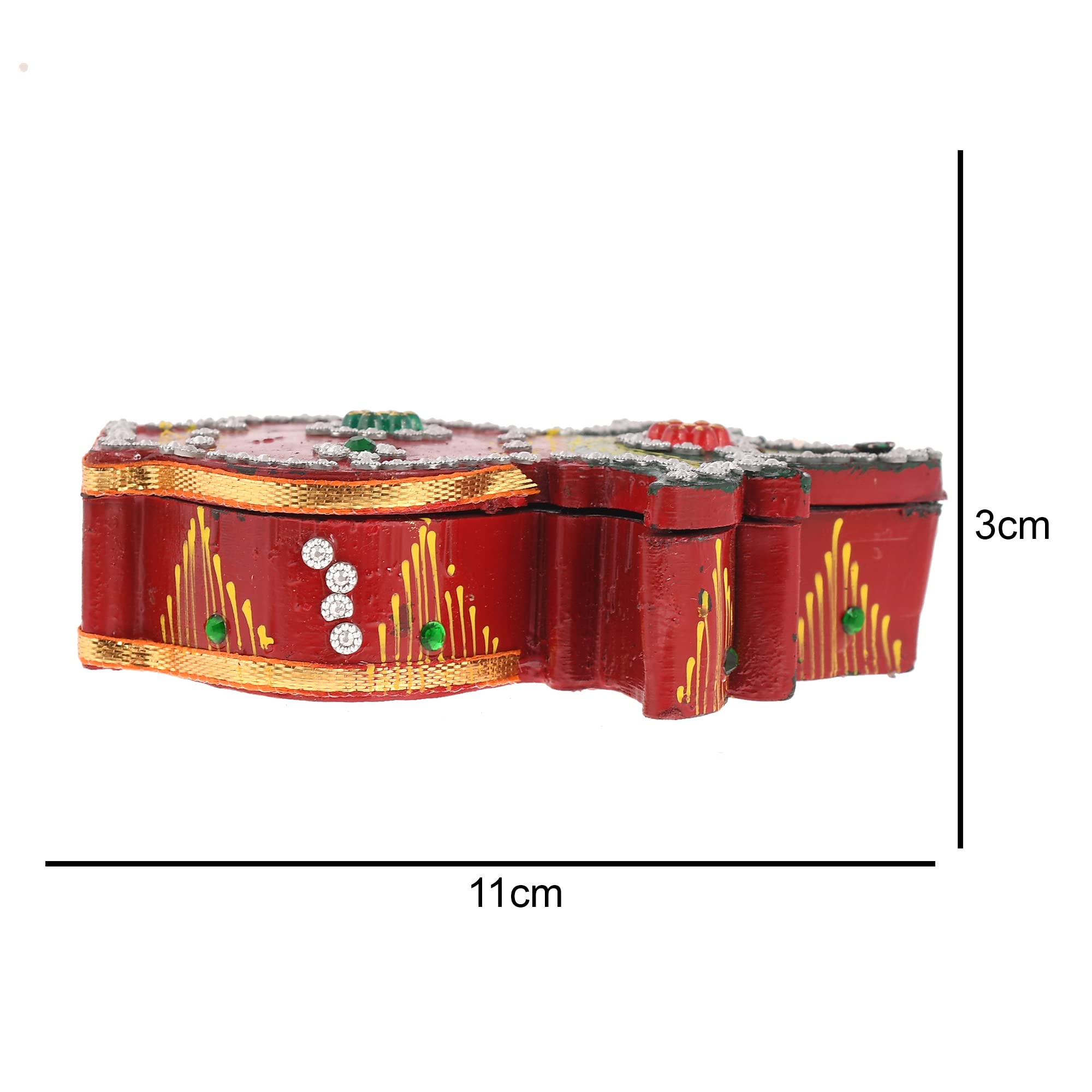 Two kumkum holder inbuilt for haldikunkuchawalchandan put in it..Material -Acralic Golden Plated with meenakari work. and white pearl&stone handmade work. Care Tips : Wipe with dry cloth don't clean it with chemical or acids This ALL IN ONE pooja thali can be the beautiful addition to your Home and Temple One of the best Gifting option for any occasion like Gift for Wedding Corporate Gift Kitty Party House Warming party Diwali Makar Sankranti Rakhi Pongal Lohri and other festivals . Very yet elegant choice Two Kumkum Holders are inbuilt In this Puja Thali itself where in you can very easily arrange Haldi Kumkum Akshata or other things according to the functions.Decorating the pooja thali can be a wonderful experience and it gives us immense pleasure to arrange the thali items as per different rituals.Here is a beautiful thali that is just perfect for all such occasions. These thalis are very bright and with a gorgeous golden colour.we have wide range of Handicrafts item.