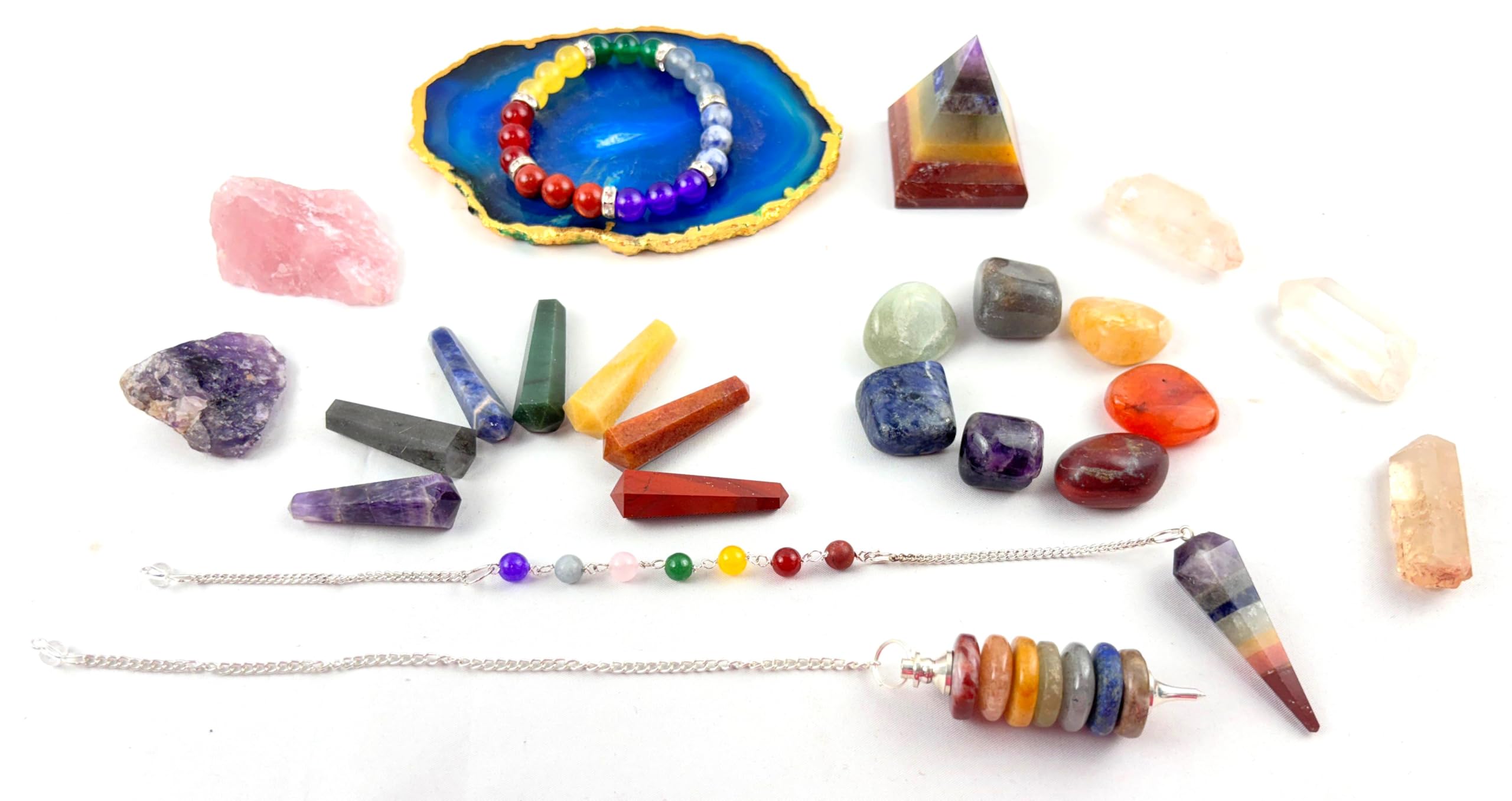 Brand: JET INTERNATIONALProduct Name: "Jet 24 Stone Auspicious Set" w/ Pouch Pendulum Bracelet Tumbled Double Point Chakra Set Natural Amethyst Rose Crystal Quartz Jet International Crystal Therapy Booklet Purpose: When our chakras are blocked or not in balance the free flow of energy is impeded leading to physical emotional mental or spiritual dis-ease. Crystals help us unblock and activate them. .Description: Best for Healing Chakra Balancing Positive Energy Meditation Sound Sleep Gift and many more applications. Gives great sense of Spiritual Awakening Mental Peace Psychic Horizon Magical Divine They can be used in many different methods of healing. They can be used to heal the entire body or aura or they can be used on a specific area of the body or on a particular chakra. Removes all bad energy evil forces negativity wrong choice. Best suited for Health Wealth Progress Prosperity Family Bonding Long Lasting Relationship. Stress Relief Crystal Therapy Good Luck Fortune Self Esteem. To program a crystal for specific use or with specific energies sit quietly away from distractions or strong electrical devices and external energies then hold the crystal in front of you clear your mind and focus on the stone. Give the crystal a cleanse with white light as explained above. Concentrate on the specific energy that you wish to program the crystal with and 'transmit' the energies and thoughts from your mind directly to the stone. BenefitsEnhances; awareness visualization intuition psychic abilities.Enhances happier moods very noticeable.Clear's negative entitiesHelps reach higher vibration of energiesHelps cleanse the chakra's.Disclaimer Jet International Brand & Products Copyrighted. Any Copying Prohibited. Any violation in the same regards may lead to account suspension on Amazon