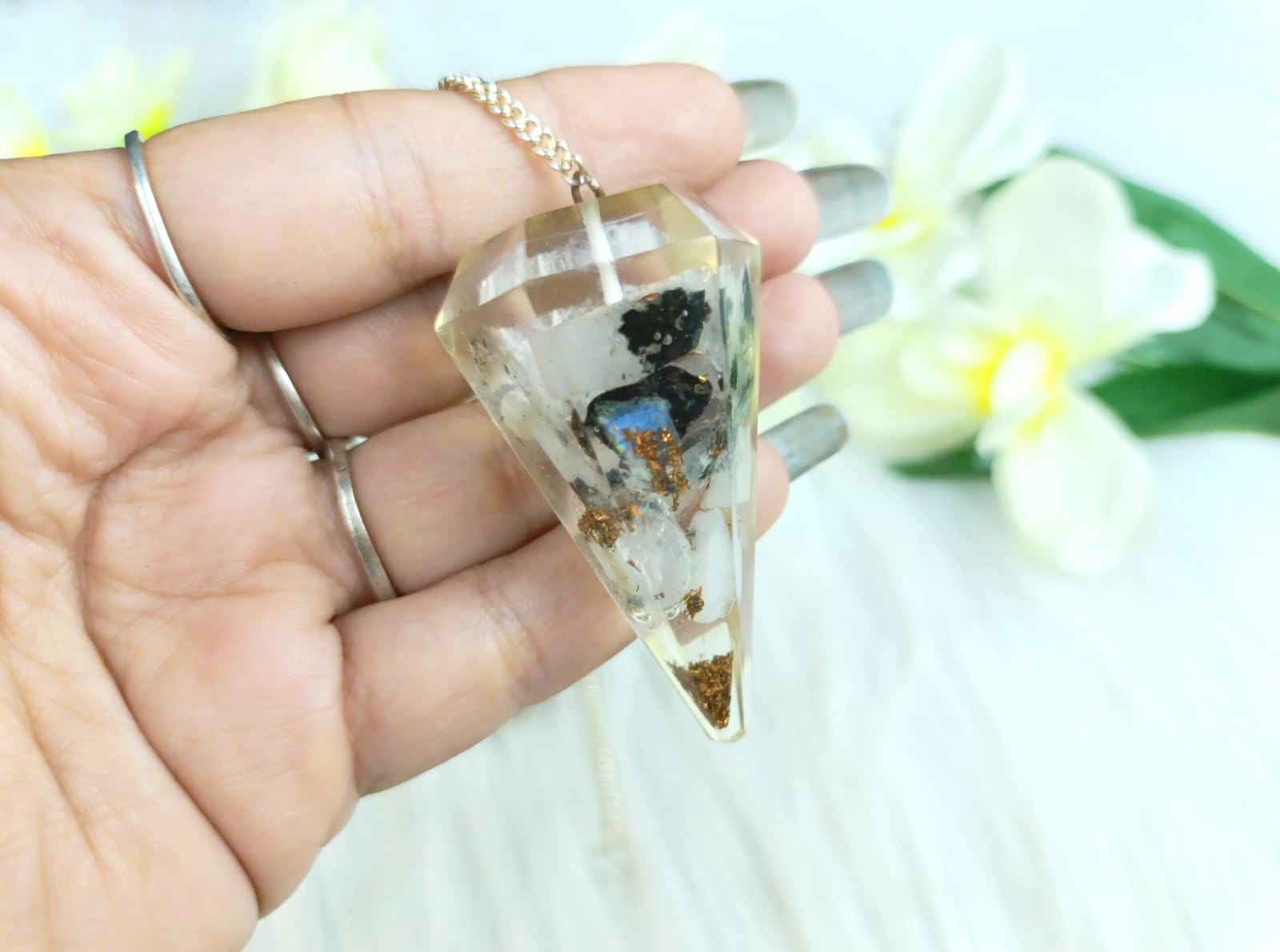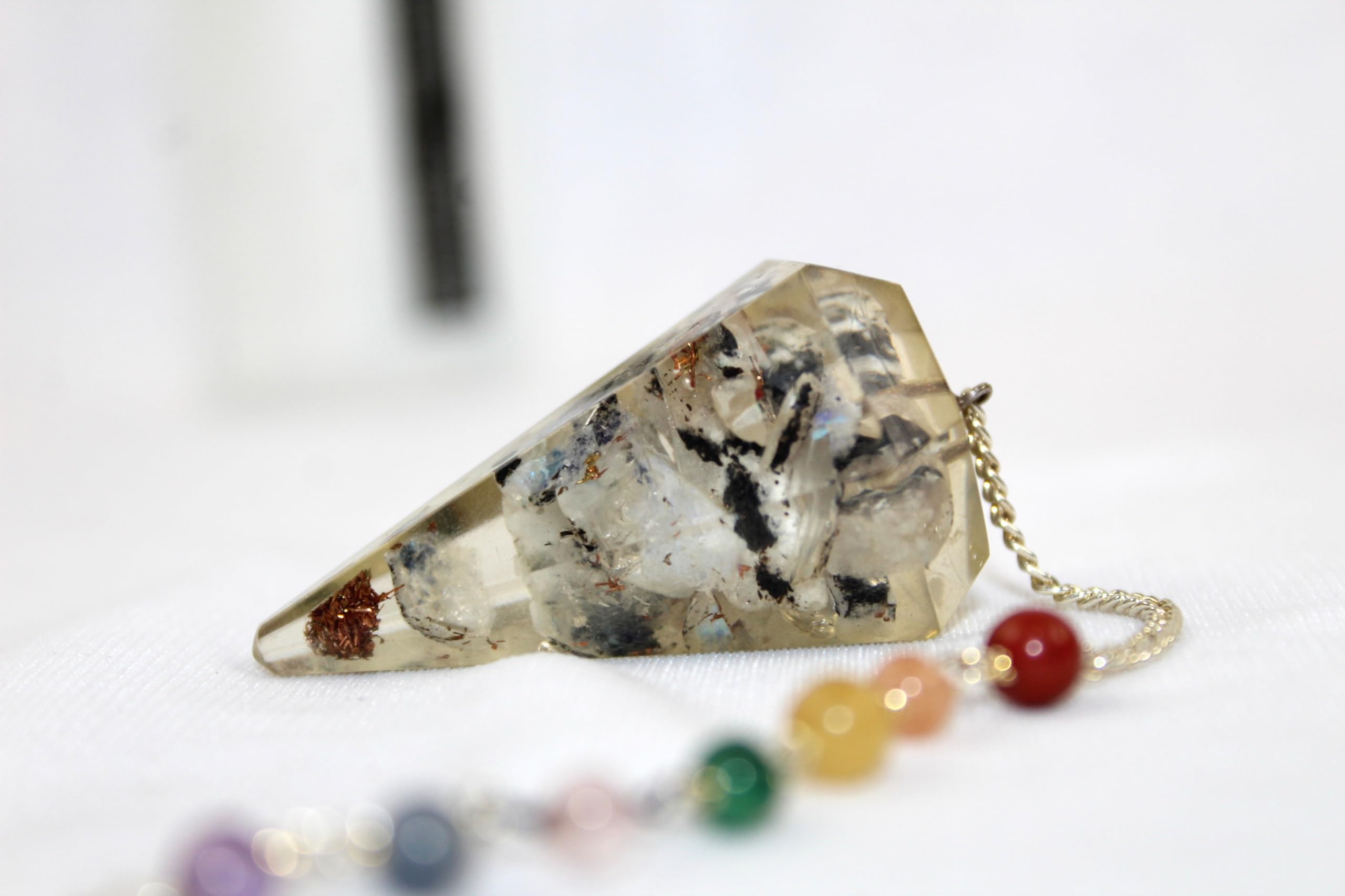 Jet Rainbow Moonstone Orgone Pendulum Approx. 2 inch with Chakra Chain. Free 40 Pages Booklet Jet International Crystal Therapy Top Quality A++. Kindly note that since all our items are handcrafted there always exists minor deviations in size color and lo