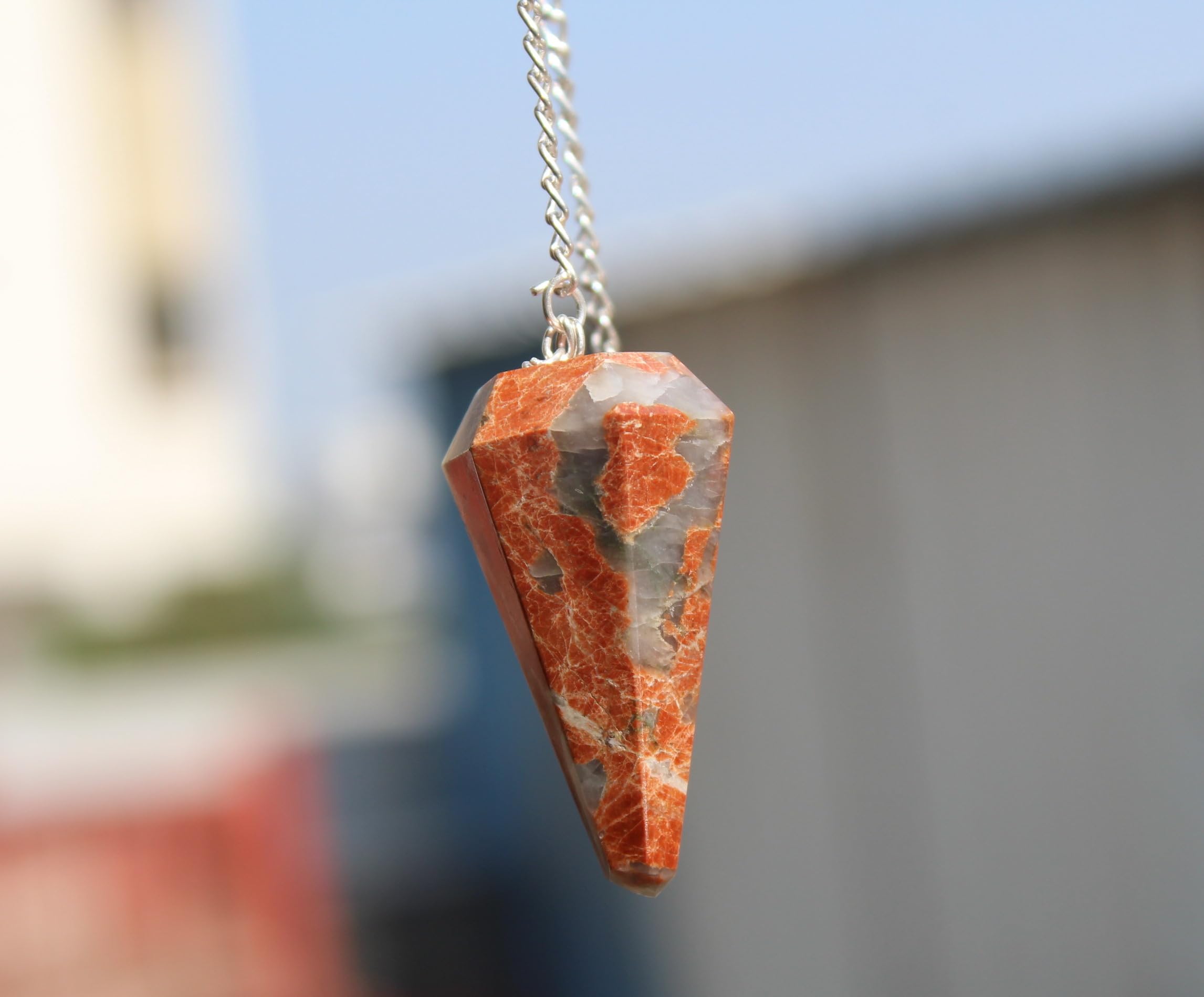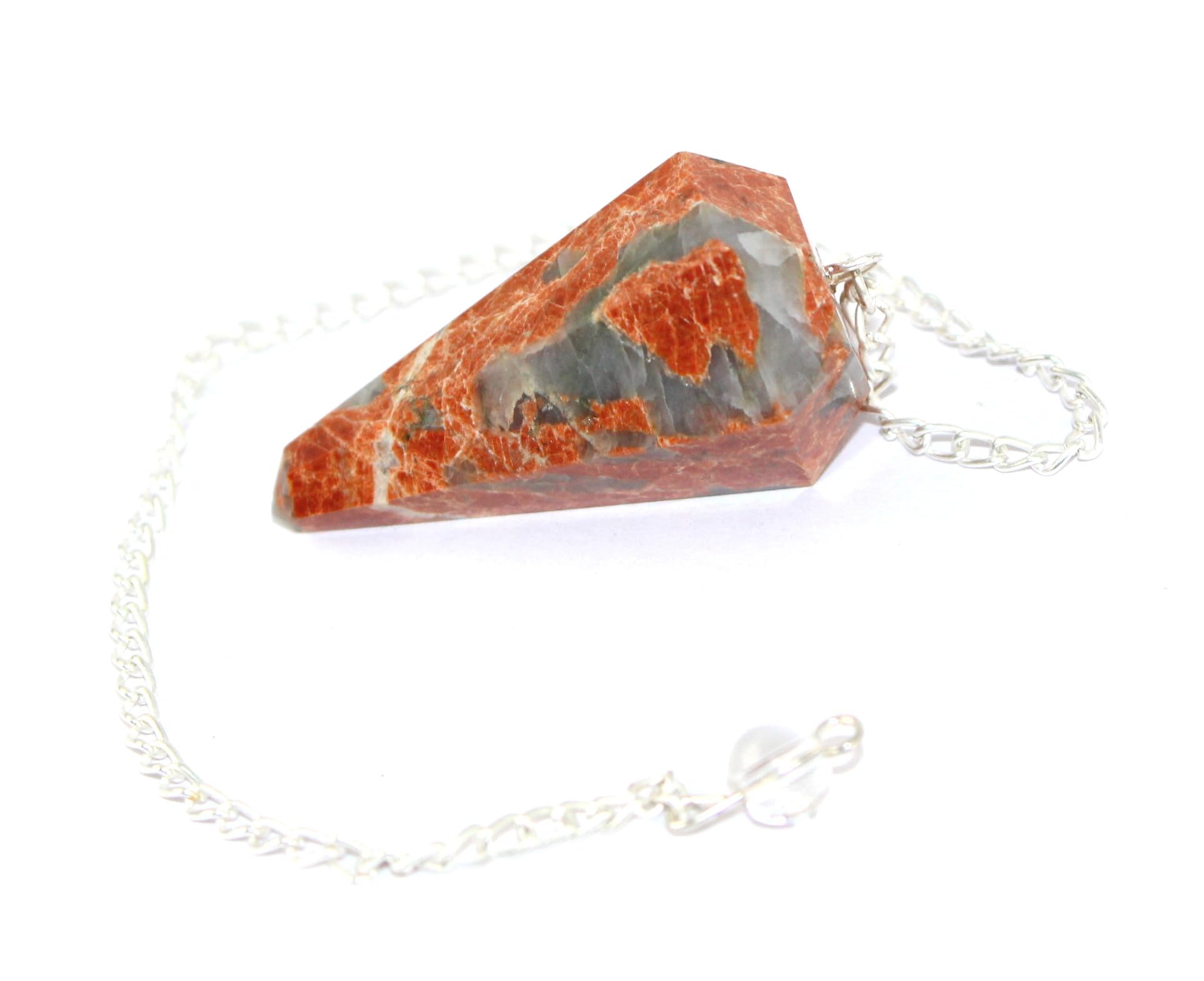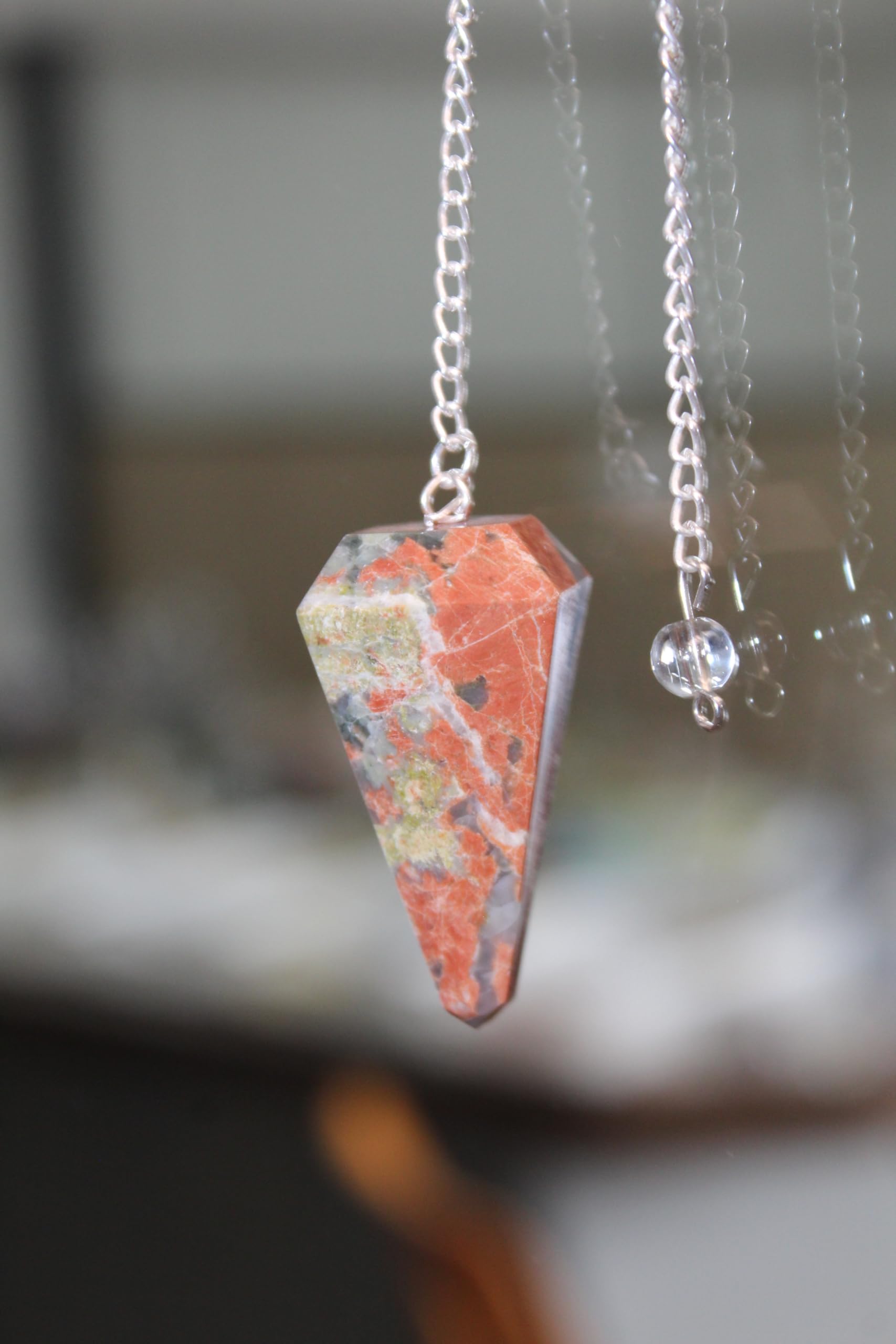 Jet Beautiful Unakite Cone Shaped Faceted Pendulum. Kindly note that since all our products are handcrafted and carved there always exist slight deviation in size shape color looks compared to the image shown here. However the Healing Qualities and Metaph